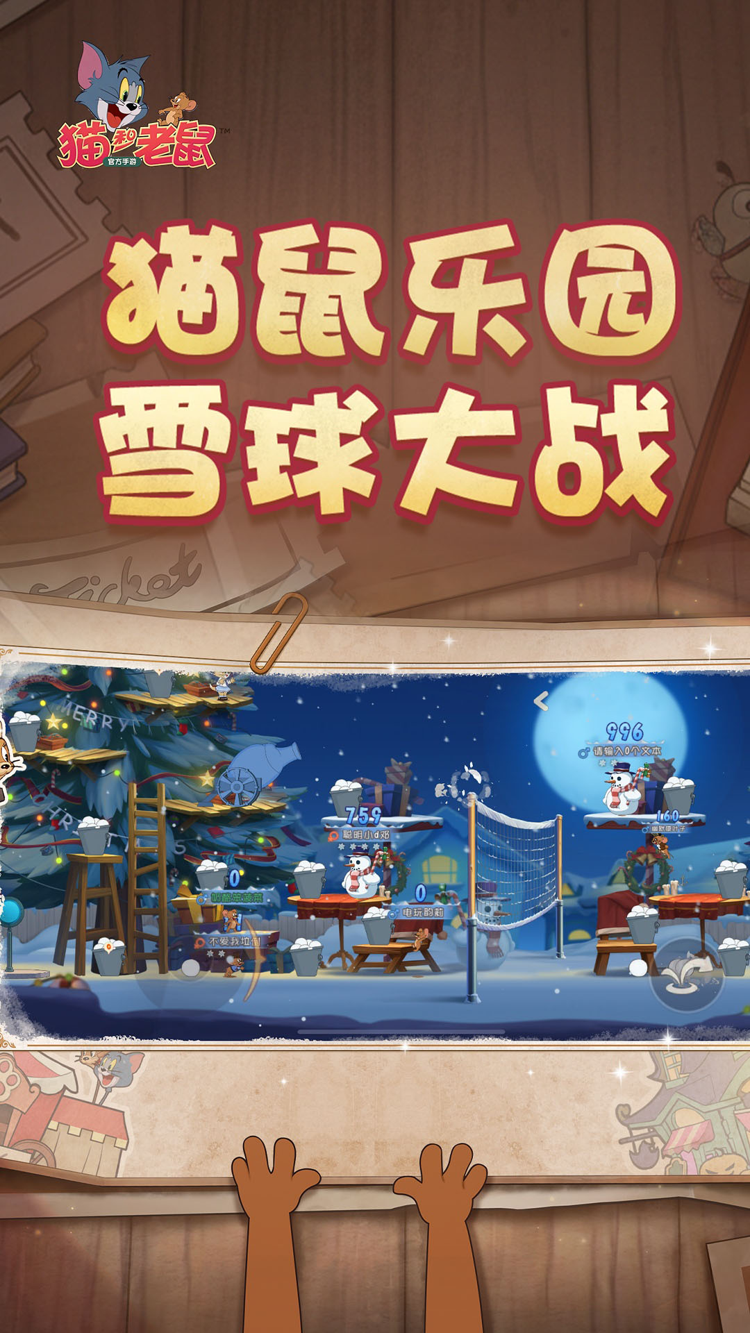 亲爱的小伙伴们,<br>《猫和老鼠》官方手游全新版本现已上线,探索全新玩法,参与惊喜活动,海量福利等你来拿,汤姆和杰瑞陪你度过开心每一天!<br>【版本更新】<br>华纳兄弟互娱娱乐正版IP授权,网易游戏诚意打造的《猫和老鼠》官方手游迎来全新版本!凛冬将至,永恒雪境!白雪皇后邀你共赴极冬之约~<br>【新玩法】<br>猫鼠乐园打雪仗玩法上线,相约开启一场趣味无穷的雪球大战吧!<br>【新赛季】<br>小伙伴们准备好开启崭新征程了吗?27赛季慢节奏日,相伴炉火旁,一起享受惬意时光吧~<br>【新活动】<br>当冬雪飘落,充满爱与勇气的经典童话再次上演,一起到猫鼠世界重温下吧~阅读故事章节,解锁丰厚奖励!<br>【新福利】<br>罐头工厂活动开启!让我们集中火力,协助汤姆杰瑞击败邪恶鲨鱼,追回属于自己的金罐头大奖吧~参与并完成新活动便能100%免费获得超重磅福利——S级皮肤升级卡!