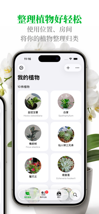 【一键记录植物成长】 植物的照片一键全部上传,自动生成不同时期的日记,记录成长的变化! 【寻找同城花友】 养花老是死?看看同城的花友们养了什么皮实的小植物! 【深度互动社交】 养花这么陶冶情操的事,肯定要与志同道合的人分享啊!