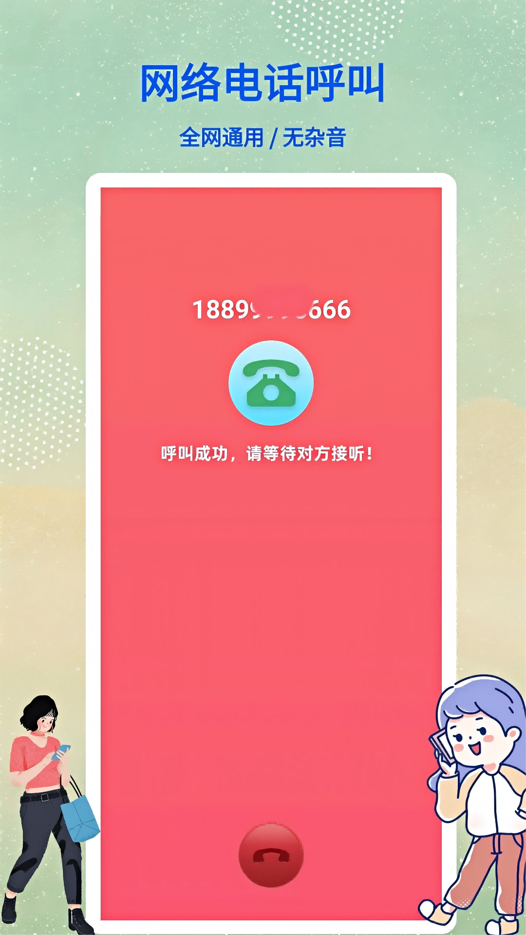 接通网络电话——对方手机无需安装软件,还不受对方软件限制,让通话变得顺畅且无缝!<br><br>你是否曾因为被屏蔽而无法与重要的人取得联系?你是否厌倦了等待对方下载同样的通话软件才能畅快聊天?如果你对这些问题感到困扰,那么接通网络电话将是你的完美解决方案!<br><br>智能短信发送:如果不想打电话,或者电话打不通,都可以试试这个短消息功能哦,智能发送,信息传递安全无忧。<br><br>恢复沟通,轻松联系!<br><br>接通网络电话引领着通话技术的革新。我们深知屏蔽给你带来的麻烦和无奈,因此,我们推出了独特的恢复沟通功能。无论你是被误会、纠纷或其他原因屏蔽,接通网络电话都能助你重新建立沟通的桥梁。无需再忍受无法联系到亲朋好友或合作伙伴的困扰,我们为你提供了一条重新连接的通道。<br><br>无需等待,即时通话!<br><br>为了提供更加便捷和高效的通话体验,接通网络电话引入了无需等待的特性。你不再需要等待对方下载相同的软件或注册账号,只需使用接通网络电话,即可与任何电话号码进行实时通话。无论是紧急情况、商机洽谈还是即兴聊天,接通网络电话都能让你迅速建立联系,让沟通变得轻松自如。<br><br>高清音质,畅享清晰通话!<br><br>在接通网络电话中,我们注重通话质量的提升。采用新的音频传输技术,我们确保每一次通话都能呈现出清晰、逼真的声音效果。无论你是在嘈杂的街头、拥挤的公交车上还是在宽敞的会议室里,接通网络电话都能为你提供出色的通话体验。我们的降噪功能还能有效抑制背景噪音,让你的声音传递得更加纯净清晰。<br><br>安全保障,让通话无忧!<br><br>通话的私密性是我们重要的承诺之一。接通网络电话采用先进的加密技术,保护你的通话内容免受任何形式的泄露和窃听。你可以放心使用我们的应用进行通话,享受安全无忧的通话体验。我们的恢复沟通功能也经过严格的安全测试,确保在使用过程中用户的个人信息得到充分保护。<br><br>现在就加入接通网络电话的世界吧!让通话变得顺畅且无缝!无论是在工作中还是生活中,接通网络电话都能满足你对通话的各种需求。快来下载我们的应用,注册账号,开始畅快通话吧!体验一次恢复沟通、无需等待的通话革命!让通话变得更简单、更自由!