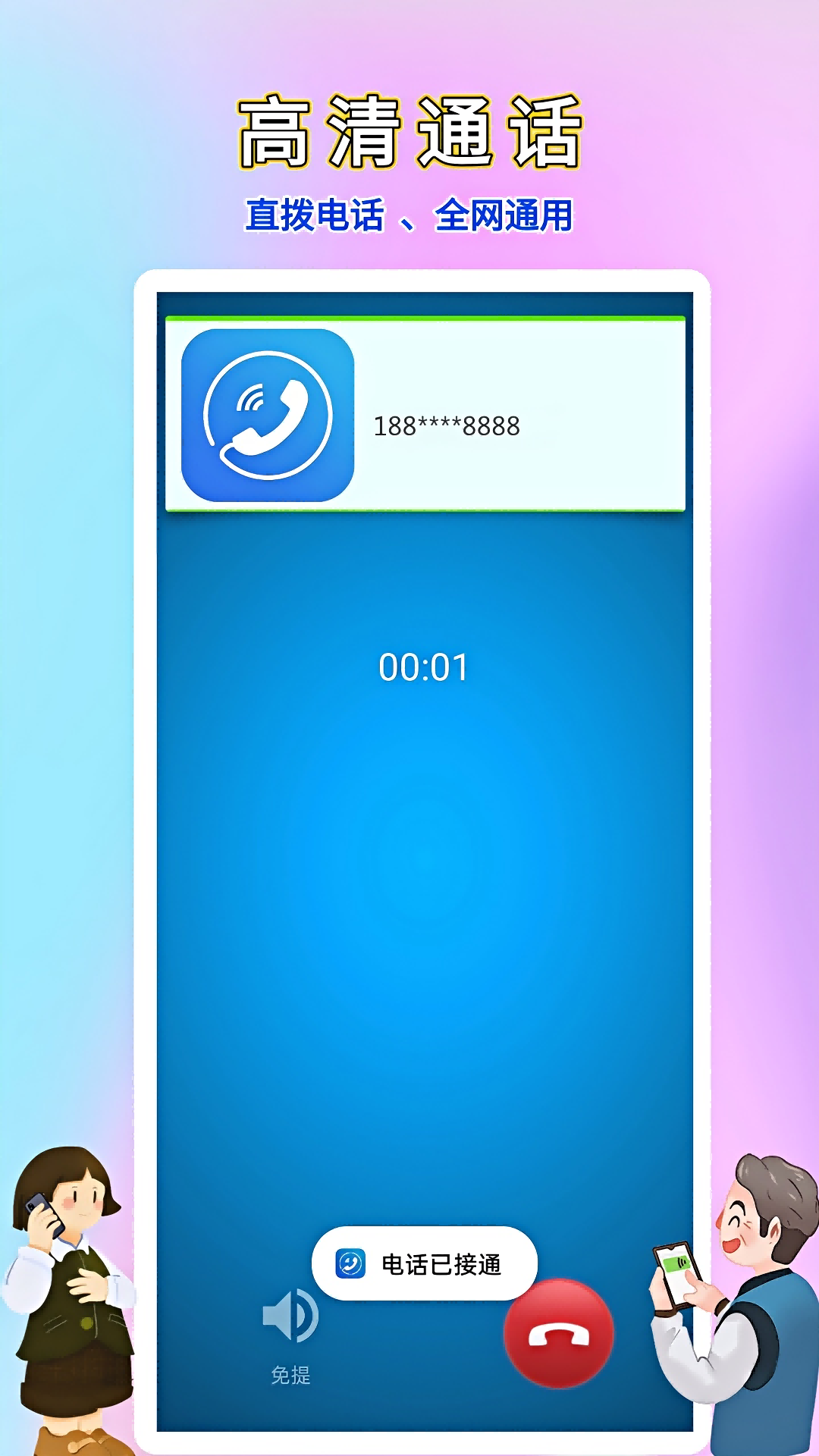 网络电话简介: <br>有讯网络电话—国内11年专注通讯领域公司出品,是一款高安全隐私且高清省钱的网络电话软件:防电话录音监听;一键快捷拨号,一键突破号码黑名单。高清通话品质、独特的通话功能、贴心的客户服务赢得广大用户一致好评,是2024年超火爆的电话软件! <br>【主要功能】 <br>一、智能电话 <br>具有加密智能电话拨打功能; <br>二、高清电话 <br>先进语音解码技术,独享优质高清专线,通话高清无杂音、无干扰、无延迟,不限制时长; <br>三、省钱电话 <br>业内至底资费标准,4分钱一分钟专线拨打,多线路并发调配,高接通率不分忙时,为您省钱90%; <br>四、绿色电话 <br>一键通话,对方免安装,无月租,无流量消耗,无广告干扰,支持3大运营商任意号段手机座机; <br>五、信誉电话 <br>电话软件源头公司出品,资质全口碑佳,支持话费转移、延期、不满意无条件退款,言而有信;<br> <br>官方公众号:wldh5588<br>欢迎您使用有讯网络电话,快点加入我们吧!