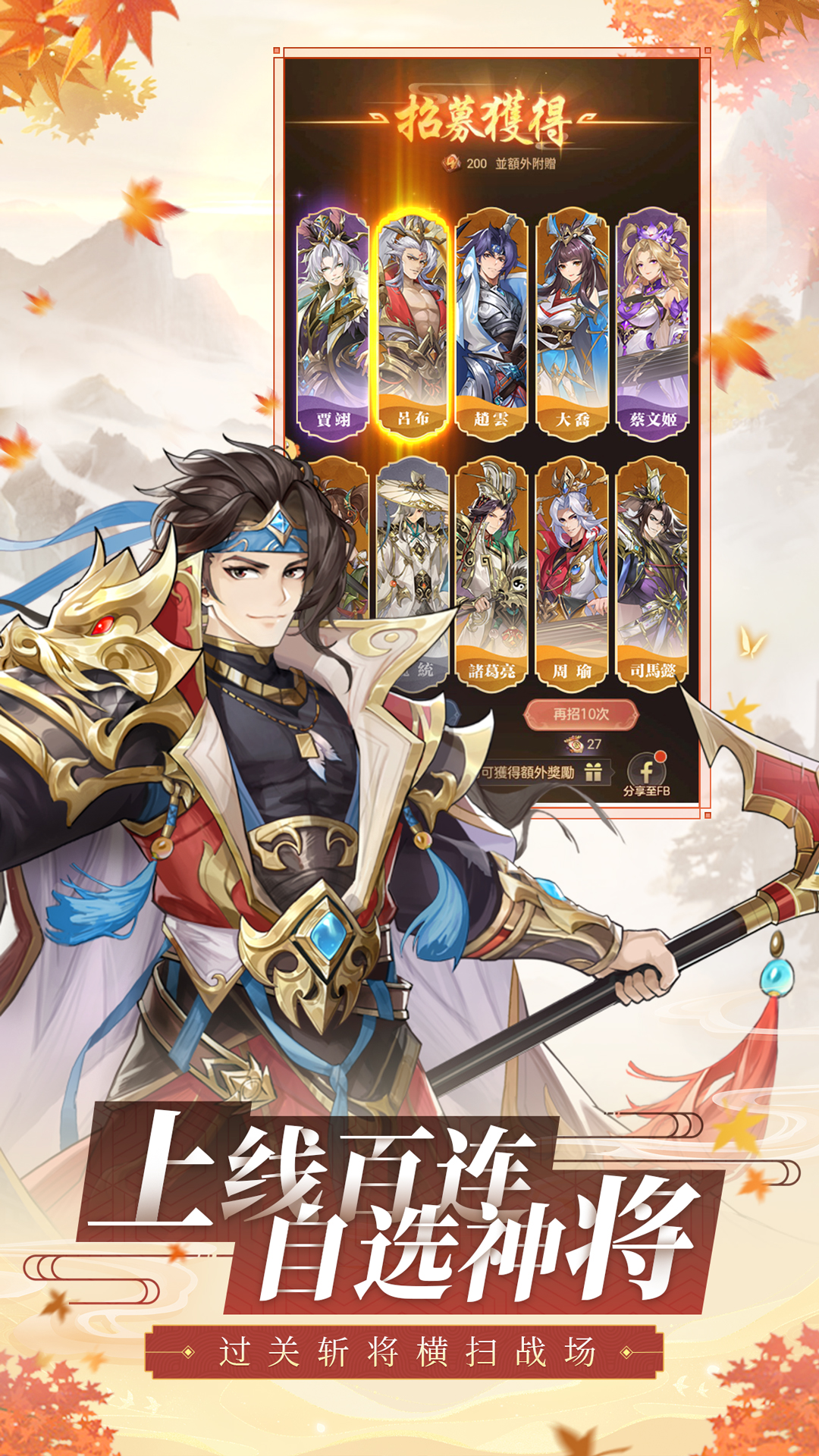 >>乱石穿空 惊涛拍岸 卷起千堆雪 >>人生如梦 一尊还酹江月 少将军,相信你也看过不少三国故事,体验过不同的时空。可是否会感叹,在这三国乱世之中,有太多遗憾无法改写。各路英豪、旷世情缘、家族伟业,浪淘尽,千古风流人物。这次来到《幻想名将录》,您将能够扮演初出乱世的少将军,在三国各种奇遇历险中成长,成为一方诸侯,逆转这个时空,重构属于你的专属幻想三国。 高颜值,真放置,2024全新殿堂级幻想三国华丽登场! 少将军不妨看一看? 【登录送自选400抽】 游戏开启后,只要玩家持续参与活动玩法,将能获得400抽武将任选,将军可根据阵容需要,随心选择,一次抽个爽!!自选橙将,搭建满配阵容,多流派策略智斗。 【精美画面】 作为一款次时代手游,画面品质一定拉满。我们以国风新次元的美术效果,通过立绘、UI、特效、美人、武将等方式呈现。目光所及,皆是养眼红颜女将! 【特色玩法】 主角升官,成就三国。红颜美人,私宅幽会。模拟经营,神器养成。跨服国战,问鼎三国!多种玩法畅玩,惊喜连连。 【全力减负】 轻松放置,随玩随停,自动收获,零资源损耗,无损换将。护肝不氪,想怎么玩,全由将军决定。