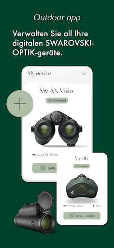使用施华洛世奇光学户外应用程序,充分释放您施华洛世奇光学设备的潜能。这款应用程序是您提升自然观赏体验的终极伴侣。无缝连接,调整设置,开启无限可能,触手可及。<br><br>主要功能:<br><br>设备管理:轻松连接您的施华洛世奇光学设备,掌控您的户外体验。轻松管理设置,确保您的设备完美符合您的偏好。<br><br>媒体中心:使用您的施华洛世奇光学设备捕捉大自然的魅力。将照片和视频直接下载到手机,重温那些难忘的时刻。管理您的媒体库,并可删除或分享您最喜爱的照片。<br><br>动物识别:通过全面的动物识别信息,丰富您的野生动物邂逅体验。通过了解更多关于您在旅途中遇到的迷人生物的信息,拓展您的自然观察。<br><br>实时取景体验:沉浸在施华洛世奇光学设备的实时取景中,实时查看周围环境。无论是观鸟还是狩猎探险,实时取景功能都能为您的探险增添新的维度。<br><br>App Garden:通过 App Garden 的定期更新,探索不断扩展的功能生态系统。我们致力于为您带来激动人心的改进,确保您的施华洛世奇光学设备与您的户外活动同步发展。<br><br>固件更新:紧跟最新技术。轻松更新您的施华洛世奇光学设备,即可使用新功能和改进,确保您随时准备好迎接下一次探险。<br><br>立即下载施华洛世奇光学户外应用程序,重新定义您的户外体验。增强您与自然的联系,捕捉前所未有的精彩瞬间,与施华洛世奇光学一起踏上探索之旅。<br><br>兼容的施华洛世奇光学设备:AX VISIO、TX Encounter、dG