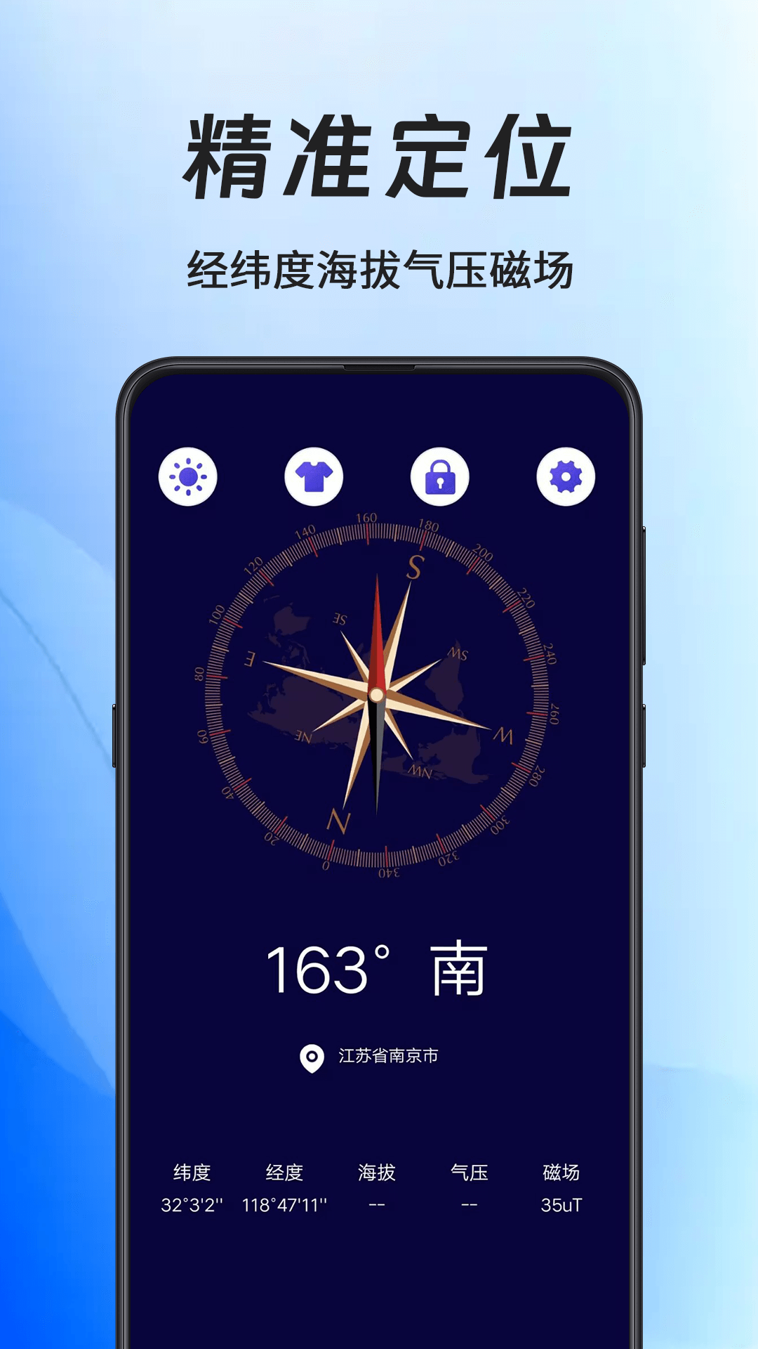 这款智能指南针是一个绿色专业的多功能应用,凭借其实用性和高人气深受用户喜爱。它提供沉浸式体验,视界开阔,采用柔和的感官设计,UI界面精致细腻。<br><br>它功能强大,操作简便,整体表现非常出色:<br>·清晰指南:精确显示空间方位,提供全面的地理信息。<br>·传统罗盘:融合华夏古文化,探寻神秘的东方智慧。<br>·流畅画面:画面效果精心优化,性能卓越。<br>·街景地图:实景展示所选地点,身临其境般感受街景影像。<br>·工具集合:提供水平仪、分贝仪、量角器、直尺、手持弹幕、手电筒、听力测试等多种增强工具。<br><br>使用这款智能指南针,您将享受以下功能:<br>·精准导航:结合实景与地图,不再迷路。<br>·海拔测算:通过气压校准精准计算当前海拔高度。<br>·直观方位控制:配有表盘十字线,帮助您更直观地掌控方向。<br>·全面数据展示:包括经纬度、地址、气压、海拔、磁场强度等多种地理和环境信息。<br>·专业地图功能:支持地点查询、方向辨别、卫星地图查看和路线规划。<br>·设备功能检测:一键检测手机功能,快速排查故障。<br>·离线地图:支持下载离线地图,无需网络即可使用。<br>·骑行友好:搭配行车支架,骑行时方便查看方位信息。<br>·强大工具箱:集成多种常用工具,满足您的日常需求。<br><br>功能不断升级,体验更加出色。这款实用小工具必将成为您日常生活中的得力助手,期待大家的支持与好评!<br><br>温馨提示: <br>指南针的正常运行需要设备具备相应的传感器硬件(部分手机可能需要授予运动数据权限)。如果您的设备支持,指南针将正常转动。请勿因操作问题随意给予差评,以免影响其他用户的体验。您可以在App内进行设备检测和校准,确保使用顺畅。感谢您的支持,祝您使用愉快!