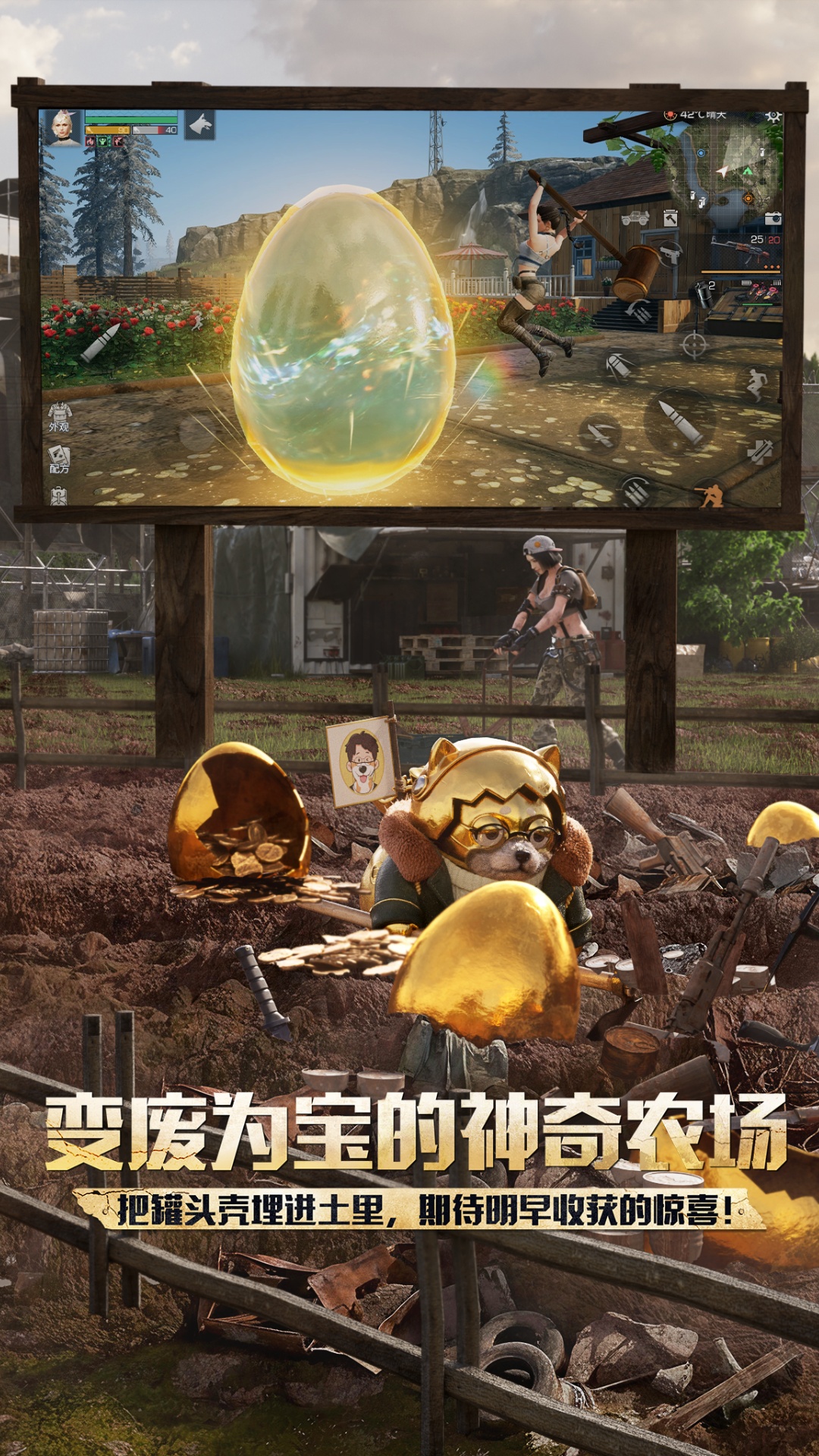 亲爱的幸存者,在末日废土上,我们找到了将绝望直接转化为希望的方法。现在,每一件被你丢弃的废品,都是通往财富的种子。<br>欢迎来到转运农场,这里的土地拥有颠覆常理的魔力。将废铁、碎玻璃、旧零件埋入田中,耐心培育,你将亲眼见证它们破壳而出——变成闪烁诱人光芒的“转运金蛋”。敲开这些金蛋,珍贵的异变核芯、明晃晃的金条、或是独特的节日外观,都将可能成为你的节日收获。<br>整个营地都将因这份好运而沸腾。你们的吉祥伙伴哈基博,会穿着你为它精心挑选的新装,在营地的篝火旁与集市广场上欢快奔跑,为末日增添一份难得的喧闹与温情。与它互动玩耍,它可能会为你叼来意想不到的节日小礼物。<br>当节日广场中央的奇迹金蛋被所有人擦亮,当旧世界的一切残渣都蜕变为新生的基石,当漫天金辉将为每个人加持幸运时,你会明白:这里没有废品,只有尚未觉醒的宝藏。在这里,珍贵的并非掠夺,而是创造;暴富的并非囤积,而是循环。废物与宝藏的界限,只在于你能否看见那份被尘埃掩盖的、生生不息的“春”。<br>现在,拿起你手边的废品。<br>把它种下去,然后,等待奇迹孵化。<br><br>-保持希望和求生意志<br>废土后的世界已变陌生。饥饿、寒冷、怪物和未知企图的组织时刻威胁着玩家,请务必保持冷静,相信一切总有解决办法。<br><br>-利用一切活下去<br>怪物横行的城镇、荒废许久的矿区、瘴气弥漫的沼泽、寒冷的白树高地……探索废土每一处角落,收集和利用一切稀缺的生存资源。采集、狩猎、生火烹饪填饱肚子;动手制作药品、武器保护自己和伙伴。<br><br>-遭遇更多幸存者玩家<br>外出拾荒时,你会遇到形形色色的幸存者玩家。在这废土中,你需要时刻提防,守住你的生存物资;当然,你也可以跟他们分享食物、材料、弹药、和你的历险故事。<br><br>-建起废土里的”家”<br>结伴信赖的伙伴,寻找一处安宁之地扎营,一砖一瓦,共同建起属于你们之间的家。在漫漫冷夜,相聚于篝火处,相拥取暖。