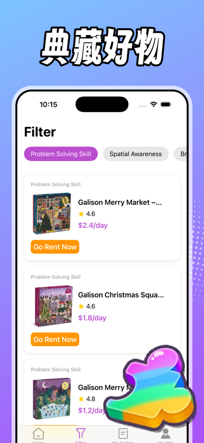 A one-stop platform for exploring various puzzle and brain-teaser games. Whether you prefer jigsaw puzzles, logical challenges, board puzzles, or creative brain teasers, we make it easy for you to discover, rent, and play your favorite games anytime.