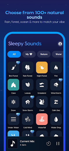 使用 Sleepy Sounds 更快入睡、深度放松并减轻压力——汇集自然之声、白噪音和冥想音乐,助您拥有优质睡眠。<br><br>探索数百种舒缓音效、平静乐曲和沉浸式场景,旨在帮助您改善睡眠、深入冥想,并在漫长一天后彻底放松。无论是失眠、焦虑、压力,还是仅仅想享受片刻宁静,它都是您的理想选择。<br><br>🌿 功能亮点:<br>数百种声音,数千种组合,带来无数舒缓时刻。<br><br>🔊 100+ 自然声音与白噪音<br>探索涵盖多种类别的丰富舒缓音效:<br><br>自然之声:森林氛围、树叶沙沙、鸟鸣、篝火噼啪声<br>雨声:雷雨、帐篷上的雨滴、小雨淅沥<br>水声:海浪、溪流、小河、水下环境音<br>动物叫声:青蛙、公鸡、鲸鱼、鸟类<br>冥想音调:禅钵、阿尔法波、环境风铃<br>乐器:钢琴、小提琴、长笛、钟声<br>白噪音:飞机、风扇、烘干机、吸尘器、火车、频率音<br>以及更多助您放松、专注或入睡的舒缓声音。<br><br>* 智能混音功能 – 自由混合叠加多种声音,调节音量,打造您专属的完美放松组合。保存并命名您的混音,方便日后随时调用。<br><br>🌌 高品质音频场景<br>体验精心打造的高品质环境场景集,将您的思绪带入深度平静与专注:<br><br>睡眠场景:午夜特快、天空之眠、海洋心跳<br>雨与风暴:雷电天空、风暴之夜、雨天慰藉<br>冥想:神秘洞穴、禅意寺庙、宁静隐居地<br>放松:树屋、傍晚海滩、公园漫步<br>摇篮曲:快乐之夜、平静湖面、倒影<br>日夜自然:清晨丛林、森林小径、丛林之夜<br>独特场景:复古小镇、飞机客舱、温馨壁炉<br>让您的思绪沉浸在深度平静与专注之中。<br><br>🎶 舒缓放松音乐<br>聆听为不同心境设计的平静音乐库,彻底放松身心:<br><br>睡眠音乐:安宁入睡、梦境漫游、治愈之眠<br>放松音乐:平静波浪、日落情调、平和之镜<br>冥想曲目:正念时刻、禅意花园、寂静小径<br>唤醒与专注:大脑按摩、Delta 波、噪音景观<br>摇篮曲:柔和摇篮曲、小星星、Mindara<br><br>🛠️ 附加功能:<br><br>✅ 智能混音引擎 – 自由混合自然声音、环境场景和放松音乐,并可单独控制音量。创建您独一无二的声景,并保存以备将来使用。<br>✅ 收藏夹 – 快速访问您最喜爱的声音、场景、音乐和混音。<br>✅ 睡眠计时器 – 可设定时间自动停止播放,节省电量,助您轻松入睡。<br>✅ 离线访问 – 大部分内容默认支持离线使用,仅需极少量的网络交互。随时随地,想用就用。<br>✅ 针对 Android 优化 – 专为低电量消耗和长时间后台播放设计,确保不间断的放松体验。<br>✅ 高品质音频 – 精心挑选,声音播放流畅无缝,没有令人分心的循环。<br>✅ 直观用户界面 – 设计简洁、时尚且易于使用,导航轻松自如。<br><br>🌍 加入超过 30 万用户的行列,通过 Sleepy Sounds 改善睡眠、更快放松、减轻压力。<br>🎧 立即下载,开启您的优质睡眠、深度专注和更平静生活之旅!<br><br>需要帮助?请通过应用联系我们的支持:ebitsapps@gmail.com<br>隐私政策:https://ebitsapp.github.io/sleepy-sounds-privacy-policy/<br>服务条款:https://ebitsapp.github.io/sleepy-sounds-terms/
