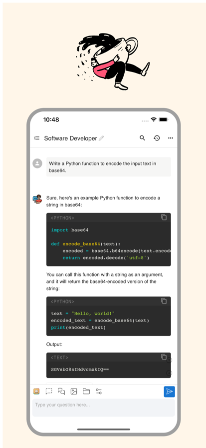 Chatbox AI 是一款强大的通用 AI 客户端,能够无缝连接全球领先的 AI 模型(包括 DeepSeek R1)。无论您使用的是电脑(Windows、MacOS、Linux)、手机还是网页端,它都可以成为您随时随地的智能助手。 主要功能: - 多模型对话:根据需求切换不同的尖端 AI 模型,满足多样化应用场景。 - 智能文件解析:上传文档、图片或代码,实时获取 AI 的专业分析。 - 代码助手:通过 AI 提供代码生成、优化和审查建议,助力开发工作。 - 图像生成:基于文字生成精美图像,将创意变为视觉作品。 - LaTeX 和 Markdown 支持:完美适配学术写作与技术文档编辑需求。 - 本地数据存储:对话记录安全保存在本地,确保隐私无忧。 - 跨设备同步:无缝切换使用,随时随地保持工作连续性。 - 高级搜索功能:快速查找历史对话和重要信息,高效便捷。 适用人群: - 需要智能编程助手的开发者 - 寻求学术支持的学生和研究人员 - 希望提升工作效率的职场人士 - 探索 AI 创作可能性的创意工作者 - 对尖端人工智能技术感兴趣的任何人 隐私与安全: 所有数据均存储在本地设备,确保您的隐私和安全得到充分保障。