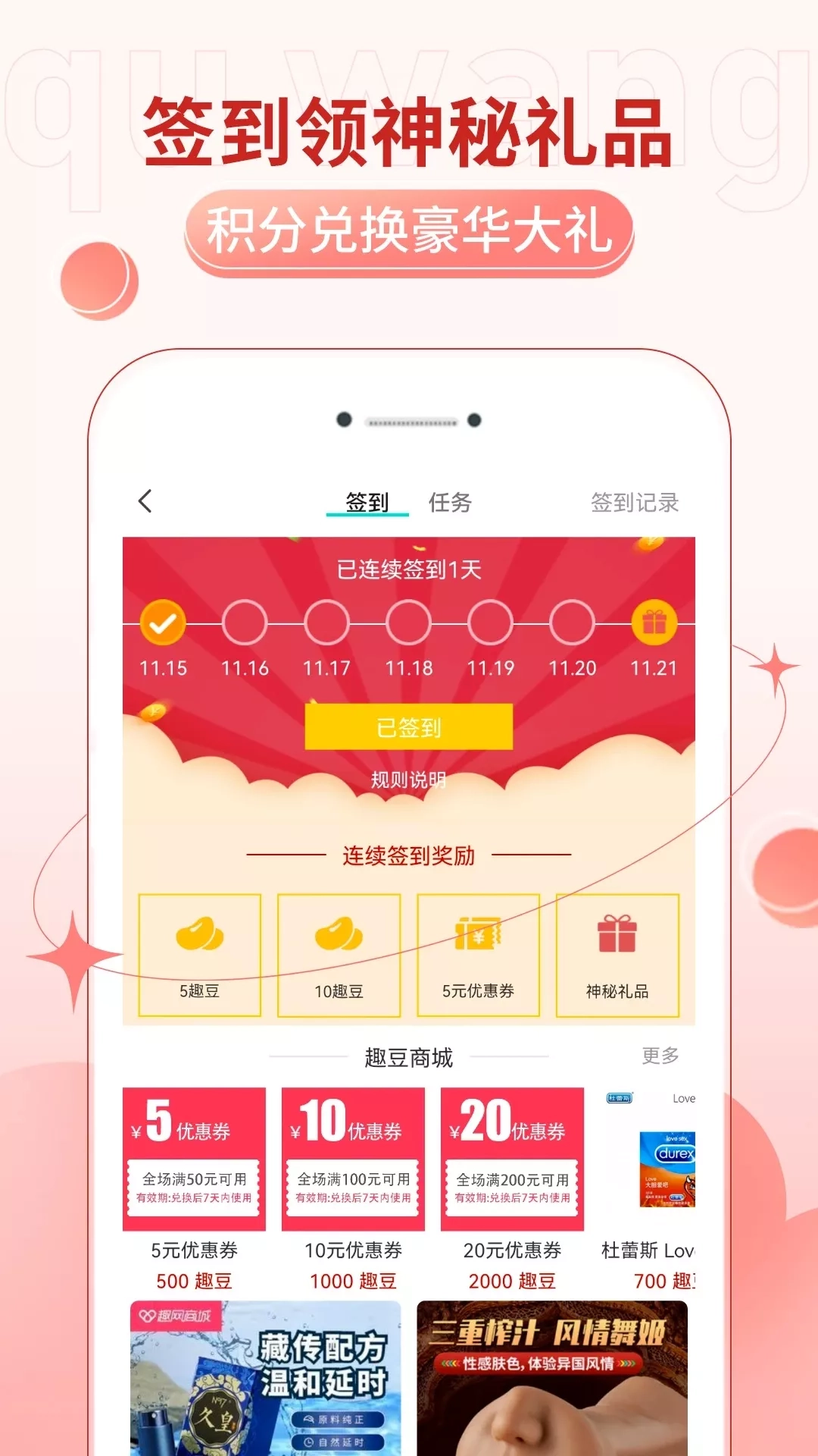 趣网商城 -千万热爱有趣生活男女的共同选择,帮你找到最适合的“玩具伴侣” 【新人福利】新人礼包,成人初体验:优惠劵、成人礼品任你选择; 【专题特卖】18的制服,25的小恶魔,32的有趣项圈;和趣网的故事从这里开始! 【真人测评】小姐姐亲手测评,成人玩具特色一目了然,选品不疑惑; 【保密配送】全程护航,两性健康购物更安心,使千万用户常驻回购; 【健康咨询】两性解疑答惑、精心科普,让你在享受有趣的同时健康生活; 下载趣网商城,即刻畅玩成人玩具乐园,还等什么~ 如有疑惑请联系在线客服: APP内“个人中心”在线客服为您服务:“你好,很高兴为您服务~”