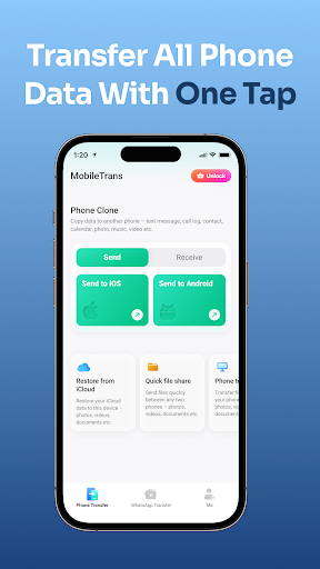 MobileTrans 可以将照片、视频、联系人、音乐、文件、录音、文档、WhatsApp 聊天记录、短信、应用和日历等内容从旧手机传输到新手机,并且支持跨平台传输,不受品牌限制:从 iPhone 到 Android,从 Android 到 iOS。<br><br>计划升级到新款 iPhone 17?试试 MobileTrans——几秒钟内即可完成数据传输,零丢失!<br><br>手机数据传输:以平均高达 30 MB/s 的速度将所有数据传输到新手机。<br><br>零流量消耗:传输过程中不会消耗任何移动数据。<br><br>WhatsApp 数据传输:轻松将 WhatsApp 数据(包括聊天记录、联系人,甚至贴纸)迁移到新手机。<br><br>您可能想知道为什么要使用 MobileTrans 来“复制我的数据”,这款 iOS 和 Android 之间排名第一的数据传输解决方案。<br><br>原因如下:<br><br>⚡️闪电般的数据传输速度,告别等待的焦虑<br><br>数据传输应用 - MobileTrans 的速度比蓝牙快 200 倍,即使是大型文件也能快速传输。平均传输速度高达 30MB/s,只需 30 秒即可传输 1GB 的视频。<br><br>💥传输过程中不消耗流量<br><br>MobileTrans 使用本地热点进行数据传输,这意味着传输过程中不会消耗您的流量套餐。<br><br>✔️支持所有类型数据传输<br><br>MobileTrans 内容传输应用支持将所有类型的数据传输到您的新手机,包括图片、视频、音频、联系人、短信、音乐、文档(Word、PowerPoint、Excel、电子书等)、WhatsApp 聊天记录、WhatsApp Business 数据和日历事件。<br><br>⭐️基于二维码的连接<br><br>照片传输解决方案 - MobileTrans 提供基于二维码的传输方式,只需扫描二维码即可连接两台设备。它支持 iOS 和 Android 系统以及各种手机品牌之间的数据传输,例如从三星手机传输到 iOS 设备,或从 iPhone 传输到华为手机。<br><br>🔒 高隐私性和数据安全<br><br>MobileTrans 和 Wondershare 都非常重视用户隐私保护。MobileTrans 仅作为数据传输的桥梁,其唯一使命是确保所有数据成功迁移到新设备。<br><br>🚀MobileTrans 的优势:<br><br>💫MobileTrans 数据传输完全支持跨平台数据传输:从 iOS 到 Android、从 Android 到 iOS、iOS 到 iOS,或在 Android 设备之间传输数据,也支持将 iCloud 数据同步到 Android。<br><br>✨只需扫描二维码即可在新旧手机之间建立快速安全的连接。<br><br>🔥数据传输不受品牌限制。您可以在 Apple、Samsung、HUAWEI、OPPO、Wiko、MI、Pixel 等不同品牌之间传输数据。<br><br>Wondershare MobileTrans 的功能:<br><br>📷照片传输:使用专业的照片传输应用 MobileTrans,您可以在更换手机时保留对您最重要的照片、视频和音频文件。<br><br>📂文件传输:Wondershare MobileTrans 一键轻松传输文件。它支持所有文件格式的传输,包括 Word、Excel、PowerPoint、PDF、ePub 等。<br><br>🗨️备份和恢复短信及通话记录:MobileTrans 可帮助您轻松备份所有短信和通话记录。之后,您可以轻松恢复它们。<br><br>📲联系人及应用传输:MobileTrans——联系人传输专家——让您一键轻松传输联系人,节省时间并确保数据完整性。它还可以将您喜爱的应用从无法下载的来源传输到您的新设备。<br><br>✅WhatsApp 和 WhatsApp Business 传输:MobileTrans 可在 iPhone 和 Android 设备之间安全地传输 WhatsApp 数据,快速传输消息、贴纸、图片、视频、文件和附件。提示:传输 WhatsApp 数据时,您需要使用 OTG 数据线连接两部手机。<br><br>联系方式:customer_service@wondershare.com