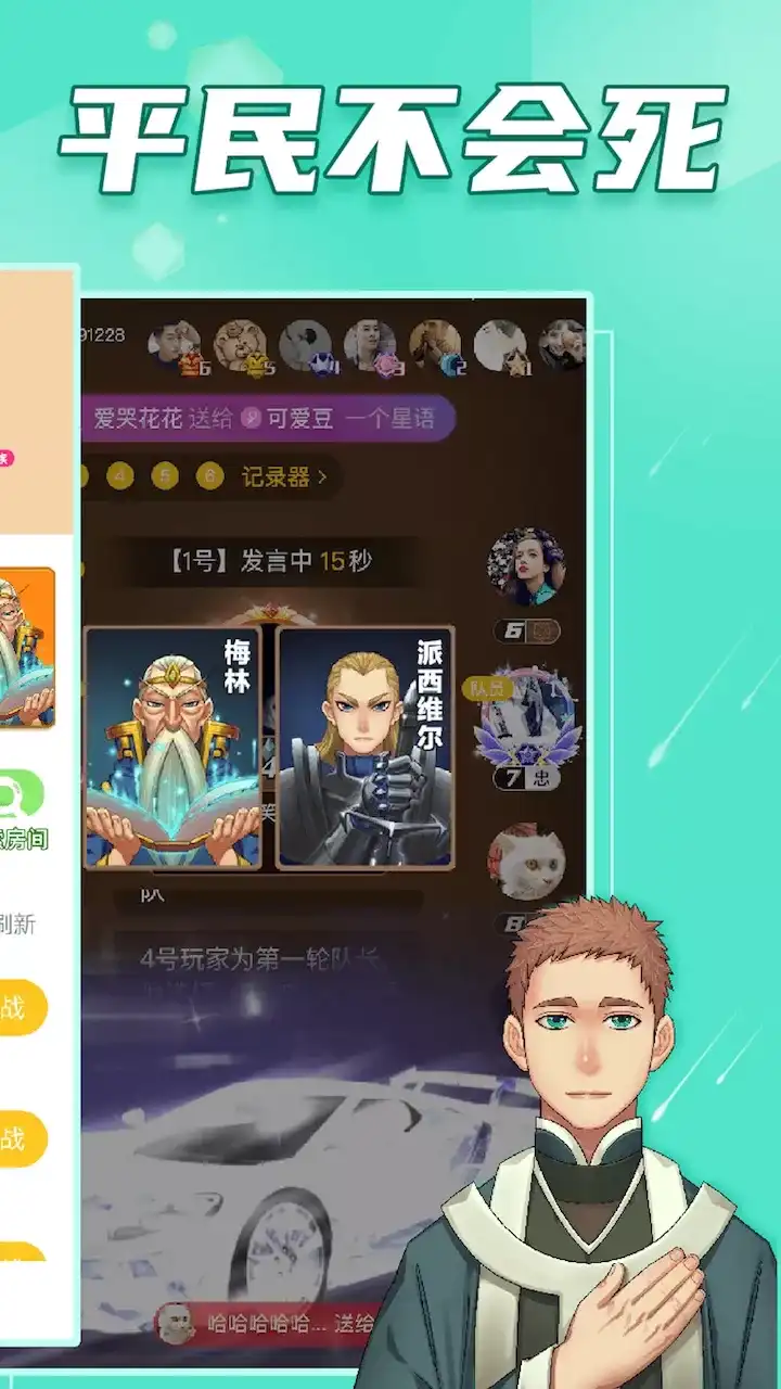 谁是卧底-天黑请闭眼杀人游戏 《谁是卧底》又名《天黑请闭眼》、《杀人游戏》;是一款呆萌炫酷、逻辑极强、模式众多的多人在线文字杀人游戏。 【游戏特色】 ---多人参与拼智力! 真正的多人在线大型杀人游戏,真正的公平快速的文字游戏!不用再害怕人员不齐和场外因素!带上你的判断、你的推理,来谁是卧底比拼智力吧! ---超多职业任你选! 游戏中三大阵营,十余种职业,多种模式随心选择!每种职业都有不同的玩法与技能,游戏独创新模式“怒火街头”,带你领略爆炸的快感! ---在线好礼送不停! 只要每天累计在线时间,就能获得大量金豆及银币!更有机会获得商城的精美时装及特效炫酷的道具!不花钱也能玩的很开心耶! ---超萌宠物求领养! 超赞的宠物系统,快来谁是卧底玩宠物养成游戏吧!会卖萌的吸血鬼公主、神奇的草泥马、呆萌的小狮子!还有百种宠物等你来领养喔!“主人~快来带走我吧!” ---Q版人物萌翻你! 游戏独特的Q版人物,让您在比拼智力的同时领略不一样的萌系画风!呆萌的形象让您在游戏中不再枯燥无聊,找回童心!