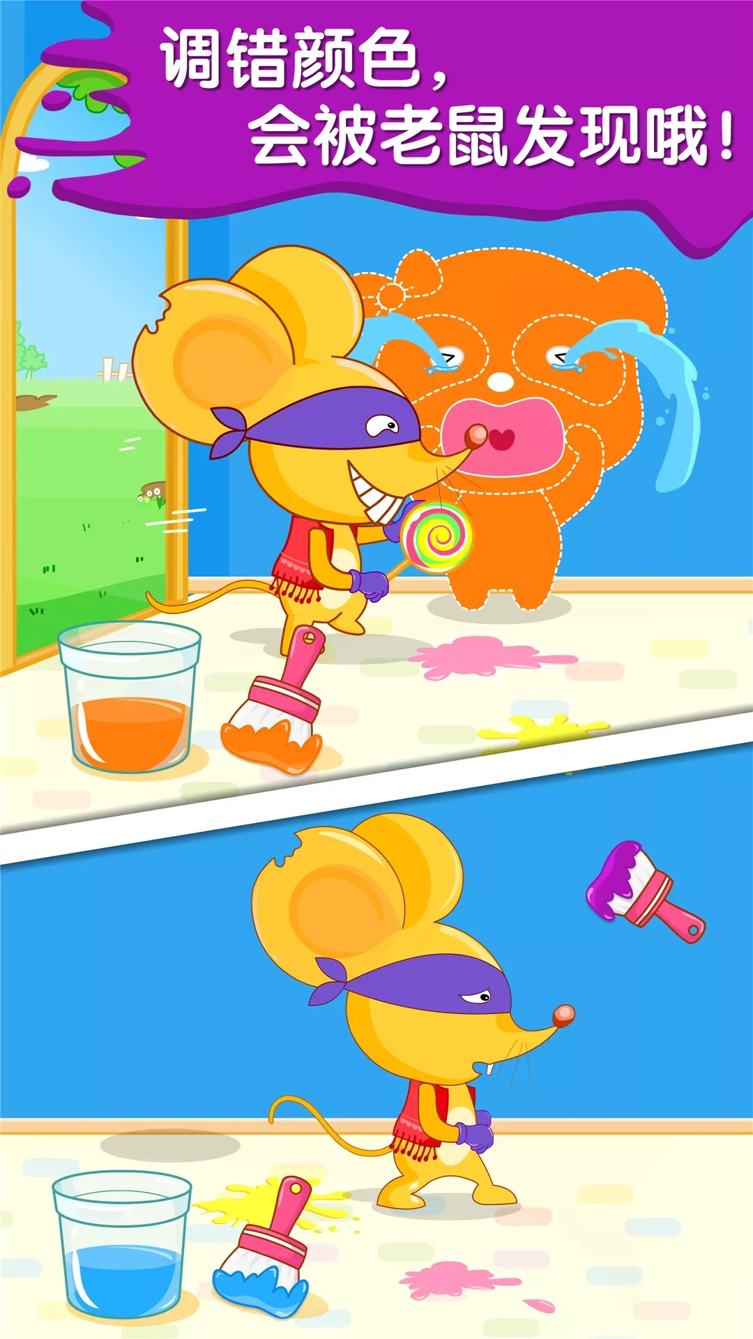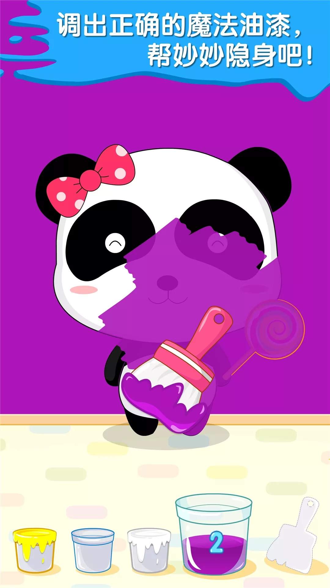 宝宝对色彩的混合变化好奇?那就快来【宝宝调色屋】学习调色吧! 【宝宝调色屋】激发孩子辨别色彩的能力! 让宝宝自由混合色彩,了解颜色变化的规律。 快来魔法调色屋帮助熊猫妙妙吧。 贪吃的老鼠要抢走妙妙的棒棒糖啦,宝宝们快混合不同的颜色,帮助妙妙躲过老鼠! 房间1——魔法油漆: 将不同颜色的油漆混在一起,调出正确的颜色刷在熊猫妙妙的身上,妙妙就可以像变色龙一样隐身啦。宝宝真棒! 房间2——魔法药水: 不同颜色的药水有不同的功能,调出各种颜色的药水让妙妙飘起来,或者变小吧!如果喝错药水,可是会被老鼠抓到哦。 宝宝们的生活,就像彩虹一样多彩而灿烂。热情如红色,快乐如黄色,梦幻如蓝色…… 那么,它们混合在一起又会变幻出怎样奇妙的颜色呢? 聪明的小朋友们,赶紧动动脑筋,帮助妙妙用调色“魔法”隐藏起来吧! 宝宝巴士BabyBus是专注打造儿童启蒙数字产品的原创品牌,累计服务全球5亿家庭用户。宝宝巴士秉承“快乐启蒙”的理念,用奇妙有趣的方式,为儿童量身定制以“好听国学故事、好看儿歌动画、好玩互动APP”为特征的海量数字启蒙内容,让孩子趣味认知、感受“真、善、美”。 欢迎联系 微博:@宝宝巴士 官网:http://www.babybus.com 邮箱:cn@babybus.com