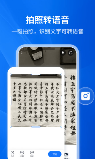 拍照识文字,是一款精专文字识别扫描王,准确识别中英日韩等12国语言文字,识别准确率高达99%,高效图片文字提取工具。 拍照识文字,主要功能如下: 一、拍照识别文字 通过手机摄像头拍摄文档、书籍、名片或手写笔记,快速提取文字内容 支持中文、英文、日文等多种语言识别,识别准确率高 二、上传图片识别文字 从手机相册导入图片,自动识别图片中的文字信息 支持JPG、PNG、PDF等多种格式,方便批量处理 三、多语言翻译 识别后的文字可一键翻译成目标语言 支持100多种语言互译,满足学习、工作和旅行需求 拍照识别文字,产品优势: 1、识别速度快,响应及时 2、支持离线使用,无网络也能识别 3、智能排版,保持原文格式 4、数据加密,保障用户隐私安全 适用场景 学生:快速提取课件、笔记内容 职场人士:高效处理合同、名片信息 旅行者:实时翻译外文菜单、路牌 这如此高效的文字识别、翻译工具,欢迎大家的下载使用!