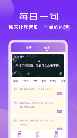 照片加文字,乃是一款简便易用的文字照片创作神器,能够使您的照片绽放全新活力。不管您是期望给照片附上一段深情话语,还是想要为生活的点滴留下记录,照片加文字皆可满足您的各种需求。 【特色功能】 丰富多样的模板:我们精心为您准备了形形色色的模板,广泛涵盖多种场景,助您轻松打造出心满意足的作品。 海量字体与独特特效:您能够自由调控文字的位置、大小以及颜色,还能从众多极具个性的字体中进行挑选,支持横竖排版以及花样文字特效,促使文字与照片完美交融。 多种风格的背景图:素材库中提供各类背景图,同时您也能够上传自己的高清照片,让照片与文字相互映衬。 热门贴纸与涂鸦:拥有超多实用的贴纸,涵盖涂鸦、心情、姓氏、文字、爱心、形状、情侣等系列,为您的照片增添更多创意因子。 文案库:我们为您呈上多种系列文案,像伤感、幸福、正能量、情侣以及英文等,让您能轻松觅得心仪的文字,为照片赋予深刻内涵。 不论是用于制作朋友圈动态、装饰相册,还是分享给亲朋好友,照片加文字都能助力您迅速达成,成为社交圈里的焦点。赶快前来下载体验,让美好瞬间永恒定格!