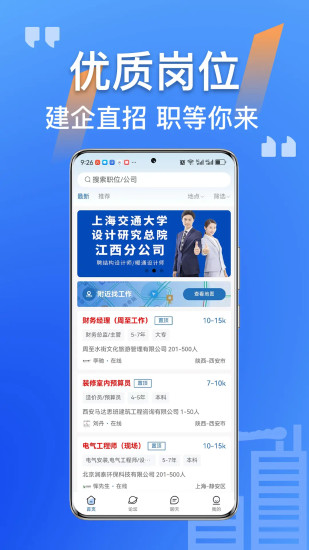 【真靠谱好活,招优质工人】 建筑港 APP 是一款打破行业界限,为所有求职者和企业提供服务的综合性招聘APP,汇聚了海量的职位信息。涵盖建筑装修、工厂制造、物流运输、生活服务、餐饮酒旅、销售客服、农林牧等多个领域的招聘求职服务 —产品特色— 【行业齐全】覆盖了1000+求职岗位,同时包含了建筑装修、工厂制造、物流运输、生活服务、餐饮酒旅、销售客服等; 【海量人才】5000万实名认证用户,通过对专业及证件等认证,让招聘者更加全面的了解求职者 —热门岗位— 【建筑装修】木工、焊工、水电工、泥瓦工、油漆工、架子工、贴砖、家具安装、家具维修、小工杂工。 【工厂制造】电焊工、操作工、组装工、装配工、包装工、质检、机械维修、电气维修、仓库管理员、普工。 【物流运输】仓储管理、货运司机、客运司机、配送员、装卸工、快递员、物流员。 【工程机械】塔吊 / 吊车、挖机 / 钩机、渣车、叉车、推土机、打桩机 / 架桥机、铲车 / 装载机。 【生活服务】安保服务、家政保洁、物业管理、家电维修/清洗/安装、汽车服务等 【餐饮服务】店长、大堂经理、厨师、领班、迎宾接待、服务员、配菜打荷、传菜员、送餐员。