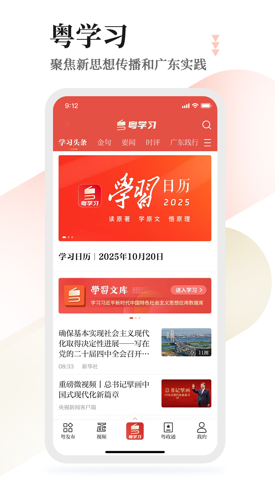 本客户端以“粤学习”版块为主打,聚焦习近平新时代中国特色社会主义思想传播和广东实践,建有全国领先的学习习近平新时代中国特色社会主义思想省级移动数据库——学习文库。 本客户端同时设置了粤发布、正视频、粤政通等s个特色版块,是广大网民了解政策资讯、交流观点见解、展示美好生活的网络平台: 【粤发布】聚合新闻、地市、识见、文化、观点等栏目,全天候推送全球中英双语时事热点; 【正视频】汇聚中央主要媒体、广东省内重要视频内容; 【粤政通】集成广东全省各地政务信息发布和政策解读,内置我要@领导、互联网+督查、辟谣平台等十多个便民应用;