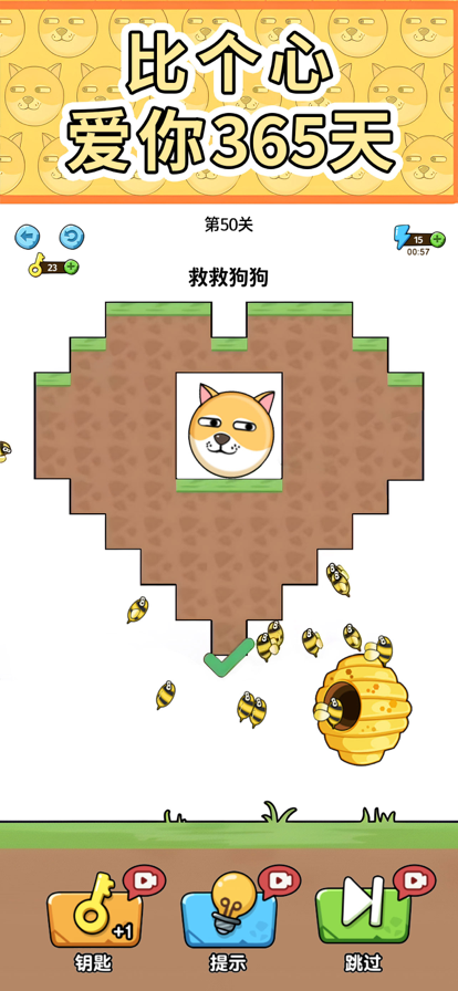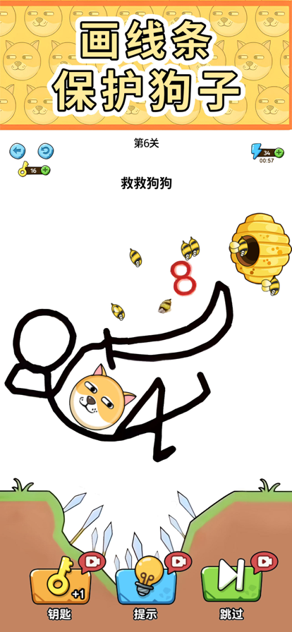 爆火的全民烧脑新版的创意主题来了! 这一次,不再是救火柴人,而是救狗头人了!被蜜蜂窝困住的狗头!doge! 我的狗狗-狗头肿么了是一款原创的益智解谜小游戏,里面饱含海量烧脑关卡,每一关,都有一个狗头等着你开动思维来拯救他! 其中丰富的创意和有趣的益智题可能会打破常识,并为您带来全新的体验!你尝尝需要逆向思考,使用不同的方式,来使用意料之外的合理方式来帮助狗头人!这是一款适合朋友家人共同消磨时间的利器,赶快下载来体验不一样的解谜游戏吧! 【游戏特色】 •画风清新简洁,画面精美 •简单的狗头表情,不简单的画线 •题目不按常理出牌,训练您解决问题的能力 •大规模的画线创意脑筋急转弯