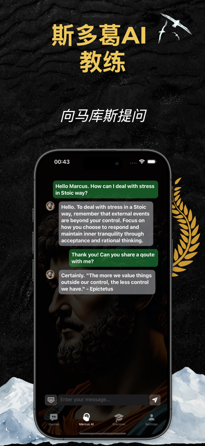 感觉生活节奏太快了吗?Marcus AI 帮助您放慢脚步,清理思绪,重新连接真正重要的事物。通过一些古老的斯多葛哲学智慧和简单的日常练习,您将更加脚踏实地,而不会给您的生活增添压力。试试它,看看如何融入您的日常生活! Marcus Aurelius、Seneca 和 Epictetus 教导我们,清晰与平和来自内心。这个应用程序将这些理念转化为在您最需要时的小而有用的宁静时刻。 每日斯多葛名言 每天早晨,收到一句帮助您停下来思考的名言。不沉重,只是一些永恒的视角,伴随您的一天。 有目的的写日记 无需写成小说,只需诚实地回答提示,帮助您自我检查,理清思绪,专注于最重要的事情。 冥想与正念 简短而简单的冥想课程,让您的思绪得到休息。无论是繁忙的一天还是只想要片刻宁静,它们都能帮助您放松。 呼吸练习 感到不知所措?几次深呼吸可以改变一切。使用简单的引导呼吸工具快速找到平静。 肯定语与核心原则 将耐心、勇气和智慧等斯多葛价值观牢记在心。基于哲学的每日肯定语帮助您以清晰和目的应对挑战。 Marcus AI 与 Marcus 进行深思的对话,您的虚拟斯多葛伴侣。无论您需要建议还是反思时刻,Marcus 都会以哲学和同理心引导您。 保存您的收藏 收藏最能打动您的名言和练习。创建属于您的思绪和实践集合,让您在一天中保持专注。 每日小组件 通过极简主义的主屏幕小组件保持与练习的联系。一瞥即可获得斯多葛灵感,伴随您的一天。 从早晨的例行公事到艰难的夜晚,Marcus AI 是您建立坚韧心态的每日伴侣。它不仅仅是一个应用程序——它是一个安静的空间,让您思考、反思,并在每一天中变得更强大。 下载 Marcus AI,重新连接那种不催促、不修复、不压倒您的智慧,只是帮助您放慢脚步,以更清晰的心态前进。今天就迈出第一步吧! --- 使用条款 - https://www.apple.com/legal/internet-services/itunes/dev/stdeula/
