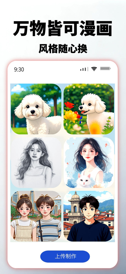 漫改相机拥有爆火的emoji小人,Q版漫画、飞天小女警、日本小人等漫画风格模型,您想要的风格,我们都有,轻松将照片变漫画!! 漫改相机是一款超火爆的AI漫画相机,拥有海量漫画滤镜和风格模型,只需一键,就能将你的照片变成独一无二的漫画作品! 漫改相机,一款集漫画、卡通、手绘、素描于一体的多功能照片美化应用。将您的普通照片瞬间转化为丰富多彩的漫画风格作品,无论是经典的铅笔素描、日漫风情、Q萌卡通等,还是创新的黏土风格、国风二次元,甚至是水墨画的雅致,都能轻松实现。 为什么选择漫改相机? 海量风格,随心切换: 从日系唯美到美式复古,从经典黑白到炫彩插画,总有一款适合你! 精准AI识别,细节拉满: 智能识别五官和轮廓,完美保留你的个人特色,漫画效果更自然! 操作简单,轻松上手: 无需复杂操作,选择照片,选择风格,一键生成你的专属漫画! 持续更新,惊喜不断: 定期更新更多风格和功能,让你的漫画创作永不枯燥! 无论你是想: 记录生活,分享朋友圈 制作头像,展现个性 创作漫画,放飞想象 漫改相机都能满足你! 漫改相机,让您的每一张照片都充满创意与趣味,轻松成为朋友圈中的焦点。立即下载,开启您的漫画变身之旅,让每一张照片都成为不朽的艺术品!