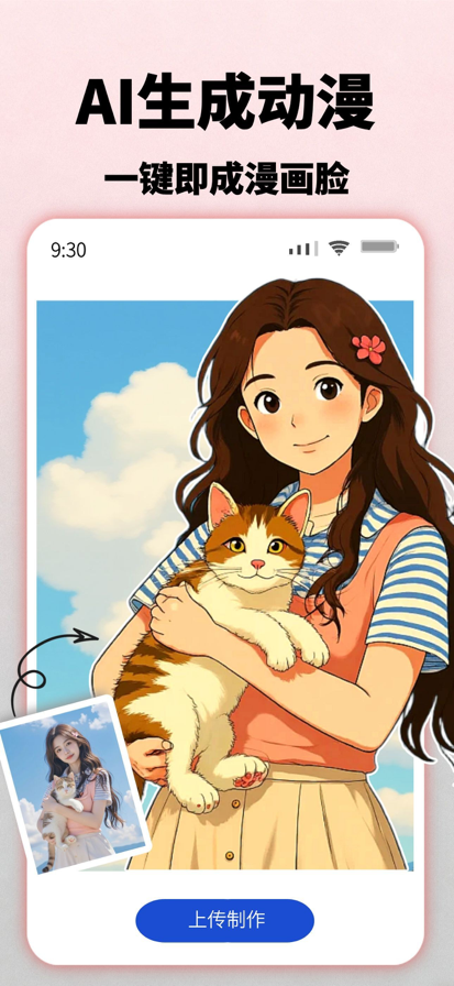 一键将照片变成动漫、卡通和艺术风格作品! 只需轻轻一点,即可将自拍照转换为 100 多种令人惊艳的 AI 艺术风格——从90年代风格的日系动漫、可爱的卡通头像,到复古的像素艺术和优雅的水彩画像,无需任何编辑技巧或提示词! === 核心功能亮点 === • 100+ 种 AI 艺术风格 涵盖动漫、漫画、经典卡通、素描、水彩、像素风等多种视觉风格。 • 一键智能转换 上传照片,一秒应用梦幻艺术效果。 • 无广告、无水印 干净纯净的创作体验,呈现专业效果。 • 高清导出 支持高清保存与分享,适用于头像、社交封面等用途。 • 轻松管理与分享 内置个人作品库,一键分享至 微博、抖音、小红书等社交平台。 • 每周更新新风格 不断推出新特效和潮流风格,灵感源源不断。 使用步骤: 选择照片 → 选择风格 → 一键转换 无论你是想打造个性头像、更新社交资料照,还是只是想轻松玩图,都能让你轻松把日常照片变成艺术作品! === 订阅选项 === 该应用程序可免费下载,但要使用高级功能,则需要订阅。订阅后,您可以不间断地使用我们的高级功能。您的订阅将在每期结束时自动续订,您的订阅将在本期结束前 24 小时内从您的 iTunes 账户中扣款。 如果您希望取消自动续订,可随时访问您的 iTunes 帐户设置进行取消。为确保成功取消,请确保在当前期限结束前至少 24 小时关闭自动续订功能。 隐私政策:https://www.showdoc.com.cn/p/5e833f4fcbf58afb5b2d811ccb3232c3 用户条款:https://www.showdoc.com.cn/p/b5aea901d885e4bd932365010f7050c4
