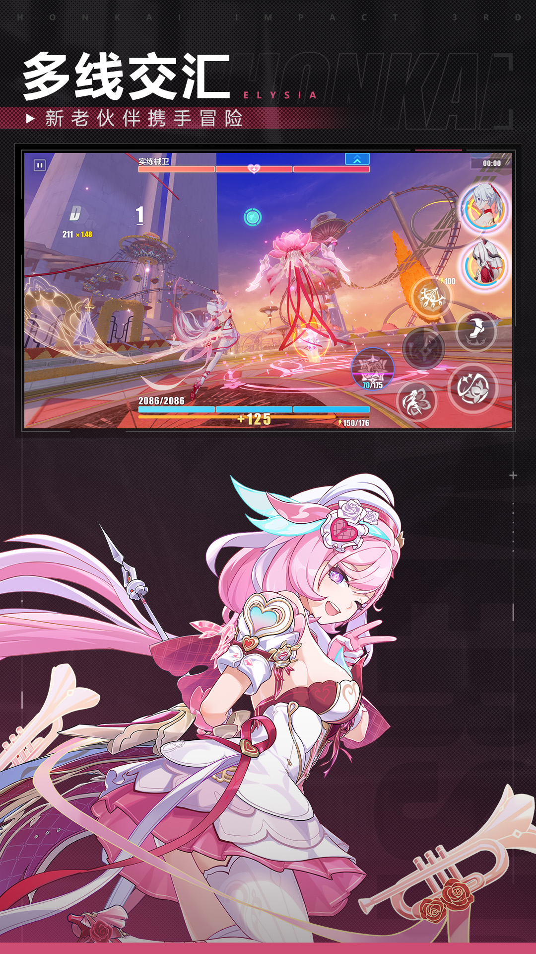 《崩坏3》是米哈游自研的一款科幻冒险动作游戏。<br>3D全视角卡通渲染、自由跳跃的立体战斗,无限可能的分支连招,酣畅淋漓的超强打击感……打造次世代动作游戏!<br>扣人心弦的崩坏系列故事、沉浸感十足的关卡剧情、豪华的声优阵容,更会让你感受到前所未有的代入感。<br>地球上的危机暂且告一段落,而火星上的新冒险已经拉开帷幕。<br>邂逅性格迥异的女武神,一起探索火星文明的秘密。<br><br>休伯利安号指挥系统已准备就绪,正在处理登录请求…校验完毕!<br>全舰听令,防护栓解锁,下载引擎开始输送高浓度能量,登录倒计时10,9,8…<br><br>「Captain on the bridge.」<br><br>从今天起,你就是我们的舰长了。<br>请和我们一起,为世界上所有的美好而战吧!<br>------------<br>崩坏的阴影之下,文明危机重重;少女们挺身而出,为守护世界勇敢奋战。但这个「世界」,比想象之中还要广阔许多、许多...... <br><br>【多线交汇,新老伙伴携手冒险】<br>琪亚娜陷入沉睡后,来自不同星球的朋友们怀揣着不同的目标,聚集在一起,探寻火星的秘密。<br><br>【动作之魂!多元体系灵活配队】<br>更丰富的队伍搭配,多元化的战斗思路,为操作带来更多样的可能性。协同出击,一起为美好而战吧!<br><br>【今日休假~ 日常减负轻松体验】<br>今天想像德丽莎一样给自己放个假?使用「吼吼休假券」快速完成任务,领取奖励吧!<br><br>【场景焕新,全新地图沉浸体验】<br>对光影、材质等细节持续打磨,带来动画电影般鲜活的美感;全新的场景将陆续开放,自由探索、感受沉浸式的剧情演出,感受次世代品质画面的魅力吧!<br><br>【重磅福利,原画集活动正式开启】<br>九周年福利上线,参与周年活动即有机会获取原画集Vol.4《寄往群星的梦》!登录累计赠送55抽,更有S级律者角色、神之键自选箱等福利等你来领取~