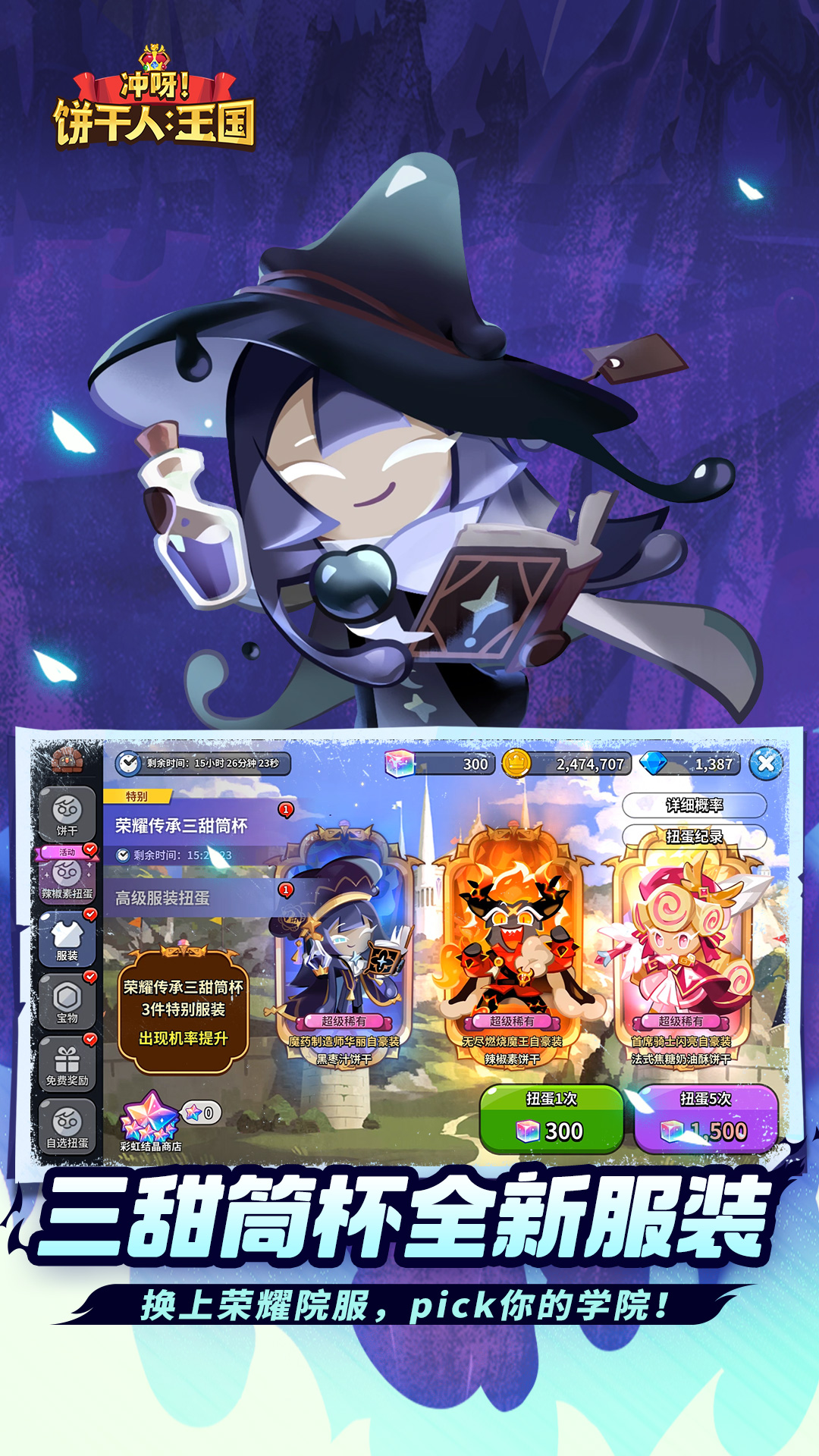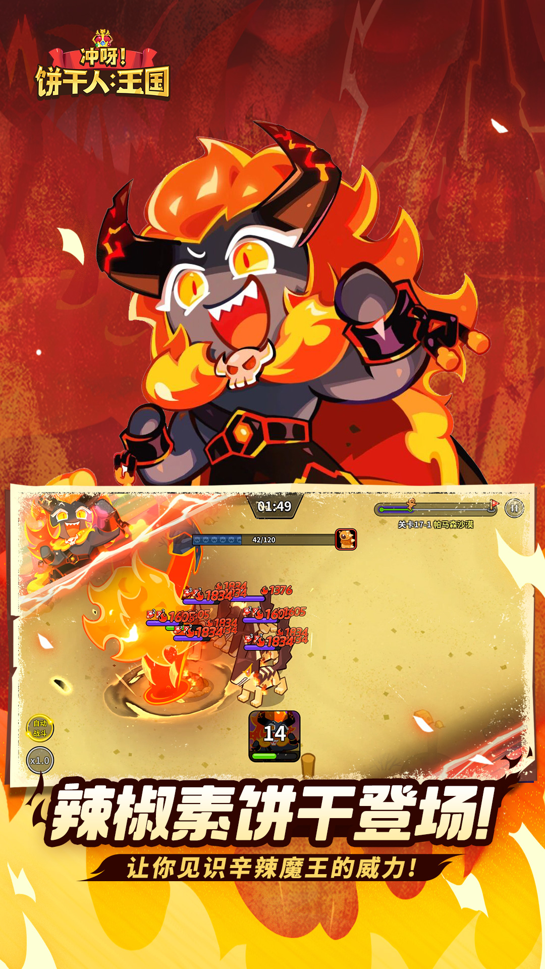 《冲呀!饼干人:王国》是一款结合模拟经营玩法元素的卡牌战斗手游,主要讲述在传说中的面包大陆上,勇敢的饼干们逃出魔女的烤箱,逐渐聚集伙伴,携手创建富饶又美丽的饼干王国的故事。 <br>在游戏中,玩家一方面需要创建自己的王国,开垦荒地,建造生产,甚至装修打扮自己的家园,让饼干们安居乐业。同时,也要和饼干们探索未知大陆,在冒险中不断变强。各色的饼干各具魅力,同时也在战斗中发挥着各式各样的作用,如何高效出战就要靠玩家的指导啦。 <br>游戏中不仅有可爱的饼干日常,热火朝天的建造生产,也有冒险路上奇妙的故事和热血的对决,更有深远的阴谋在黑暗中伺机而动。快来加入饼干人王国,一探究竟吧!