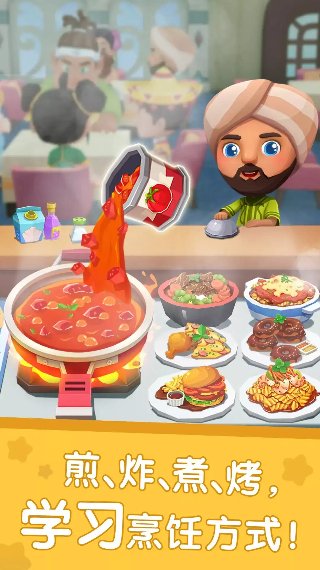 【国际料理主厨】,带宝宝领略美食的王国! 无需周游世界,也能轻松品尝各国美食。 西餐、日料、中餐、墨西哥菜、印度料理……世界美食,应有尽有。 宝宝将扮演餐厅主厨,用创意烹饪美食,招待来自世界各地的美食家。 用心经营,将一家平凡无奇的餐厅,打造成媲美米其林的星级餐厅! 迎接全球顾客,提升应变能力 餐厅营业咯。挑剔的顾客蜂拥而至。招待顾客、为顾客点单,这将充分考验宝宝的应变能力; 顾客下单了!注意把握烹饪时间,只有在规定时间内完成餐点,才能让饥肠辘辘的顾客满意。 烹饪各国佳肴,了解美食种类 小主厨登场!关东煮、汉堡套餐、生鱼片寿司、照烧鸡腿饭……百变菜式,任凭宝宝挑选; 煎、炸、切、烤、煮、蒸齐上阵,缤纷美食随心做。解锁新菜品,还能设计特色美食菜肴。 设计餐厅布置,考验审美眼光 及时优化餐厅布置,能吸引更多顾客!贴墙纸、换桌椅、铺地毯……哇,餐厅变得更华丽啦; 再来为餐厅,挑选合适的装饰品:浪漫金属留声机or素雅百合盆栽?快来迎接审美力挑战! 参加厨艺比拼,秀出动手能力 来加入全球厨师PK吧!在厨艺比赛中,展现动手能力,与各国厨师较量,争夺荣誉称号; 厨艺比拼即将开幕:DIY三明治、捏寿司、做爆米花、煮火锅、切水果……宝宝准备好了吗? 打造连锁餐厅,培养经营思维 精心经营餐厅,积累足够财富,就能获取建设餐厅的材料道具,解锁全新国际特色餐厅啦; 别忘了扩大规模!开设新店:西餐厅、日料店、中餐馆、墨西哥餐厅,宝宝就是餐饮大亨。 想烹饪花样美食,与全球厨师比拼厨艺吗?那就来【国际料理主厨】,踏上明星主厨之路吧!