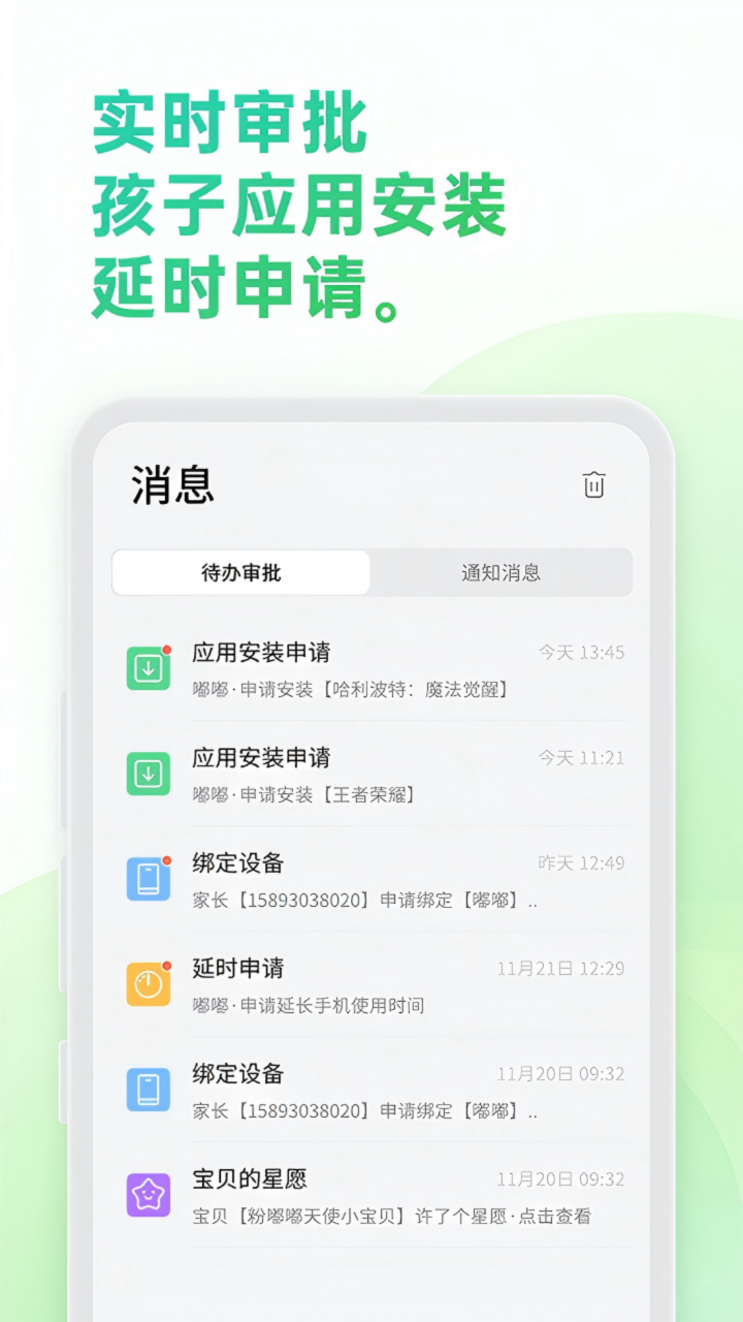 阳光守护家长版是一款帮助家长管理孩子手机的APP,通过在孩子手机安装孩子端APP,实现应用管控、远程锁定、查看位置、亲子沟通、学习模式、插件市场等功能,引导孩子养成良好学习习惯,帮助家长更好地教育孩子。 【免费基础功能】: 1,位置安全:实时定位以及历史足迹。老人版也具备此功能。 2,手机使用数据:查看屏幕使用时长数据以及数据报告。 3,应用管理:自定义禁止使用的软件、限制使用的软件。支持根据时段、时长维度管理软件。老人版可查看应用列表。 4,一键锁屏:远程锁定孩子手机,被锁定后,孩子手机只能打电话、发短信。 5,约定:与孩子建立约定,孩子完成可奖励手机使用时长或其他奖励。 【会员功能】: 1,插件市场:精细化管控,可深度对微信、qq等应用的子功能进行单独管理,例如:禁止使用微信朋友圈、微信支付等。此功能需要孩子设备是安卓系统。会员等级不同,插件个数限制不同。 2,学习模式:孩子桌面变成学习桌面,只有提交家长布置的作业后,才能玩手机。会员等级不同,学习模式可用的软件个数不同。 3,作业任务:给孩子布置作业,可结合学习模式使用,也可以单独使用。会员等级不同,可布置的作业个数不同。 4,家庭圈子:添加副账号,接收孩子动态消息提醒。会员等级不同,可设置的通知提醒个数不同,可设置的副账号个数不同。