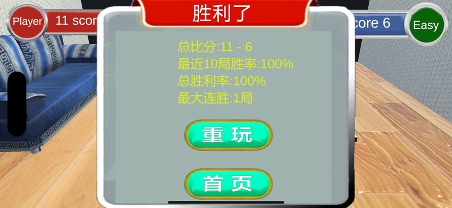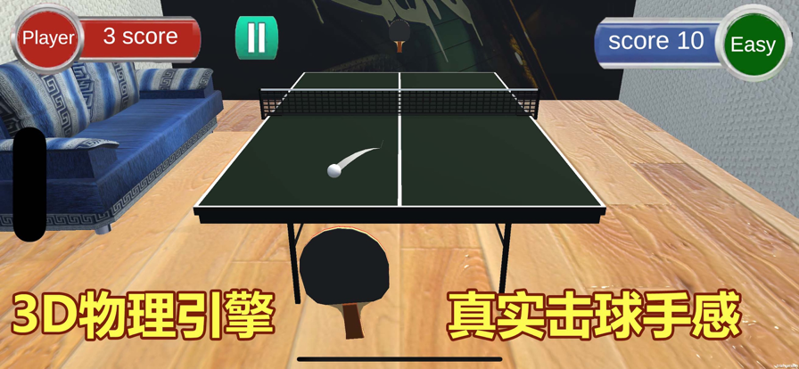 真实3D物理引擎的乒乓球对战! 物理计算驱动,操作可控、节奏清晰,适合休闲与竞技玩家。 游戏特色: 1. 真实物理驱动的击球系统 球的速度、旋转与落点全部由物理计算决定,击球反馈自然,操作更具掌控感。 2. 贴近现实的发球与对战节奏 需要主动挥拍才能发球,避免自动流程,增强对战代入感与操作参与度。 3. 多种游戏节奏选择 支持快速对战与完整比赛,满足碎片时间娱乐或连续对战需求。 4. 流畅稳定的游戏体验 针对多种设备进行优化,确保高帧率画面与灵敏的触控响应。 这是一款专注于操控手感与对战节奏的乒乓球游戏,既易于上手,又具备持续游玩的深度,适合不同水平的玩家,随时开启一场真实而紧凑的乒乓球对战。