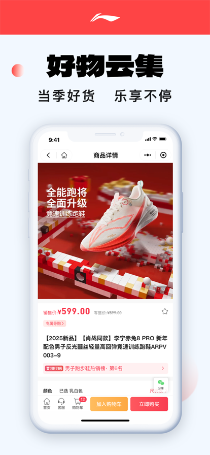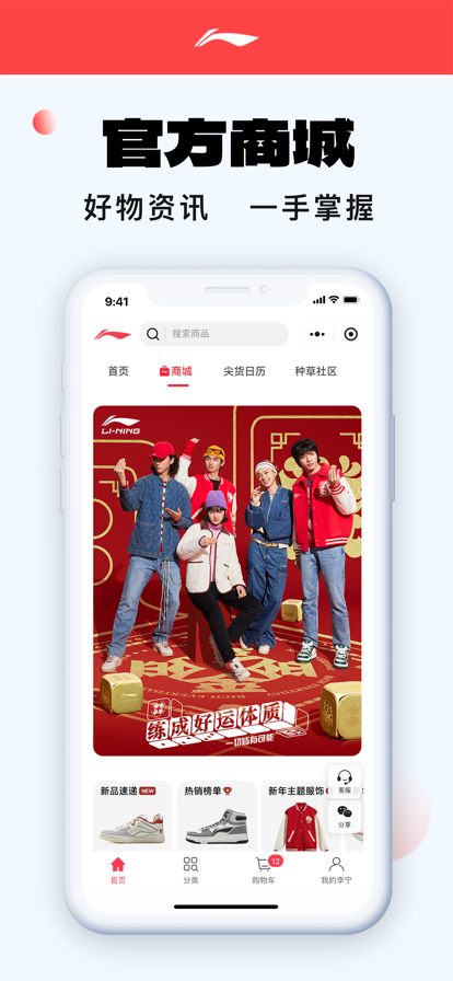 李宁官方旗舰店,是李宁为用户提供运动鞋、跑步鞋、篮球鞋、休闲鞋、运动服、卫衣、羽毛球拍、乒乓球拍、Polo、T恤、背包等专业运动装备的软件。 具有查看当季好货、优惠信息、查看附近门店、防伪码查询、商品搜索、浏览、购买、支付、客服沟通等在线功能,满足多样化需求,方便快捷购物。 产品特色: 1、会员尊享权益:会员晋级礼、购物专享折扣、购物积分、生日福利等; 2、好物云集:随时随地查看当季好物,还有更多购物好券加持; 3、正品好货:100%正品,提供防伪码查询功能一键查真伪,7天无理由退换货。