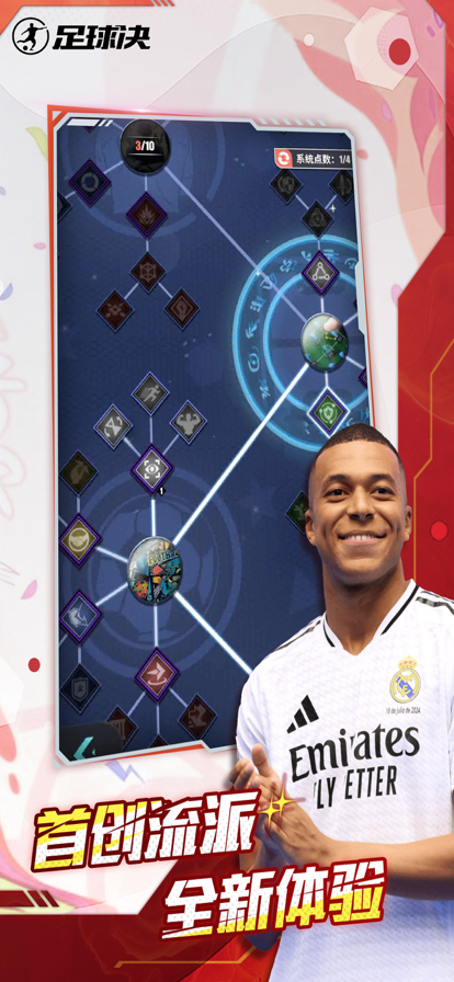 《足球决》:你的战术,现在开始BUILD! 《足球决》以颠覆性的【技能树(BUILD)系统】,彻底革新足球经理玩法! 从巧妙搭配球星技能到赛场博弈,深度融合,打造经理人游戏的全新标杆。通过 FIFPro® 正版授权,让真实巨星在您的战术板上活灵活现。 公平竞技,沉浸体验,我们邀请您一同进入这个属于“足球决”足球经理的黄金纪元! 【巨星球员轻松得,海量福利免费拿】 告别“抽卡焦虑”,上线送千抽福利,签到赠俱乐部豪门全球员!自由搭配梅西、C罗等超级球星,轻松组建梦之队,执掌全明星阵容。当别人还在为一张金卡苦苦挣扎时,你的球队早已集齐全队历史传奇,朝着冠军奖杯稳步前进! 【公平竞技,纯享决策对弈】 胜负只凭技术,荣耀归于纯粹!在「战术大师」的赛场上,公平是唯一的规则,智慧是最强的武器,摒弃数值的壁垒,唯有技巧的碰撞。完美复刻足球的核心魅力--不确定性、策略博弈和技巧至上。 【自由流派,畅享足球魅力】 流派7大体系、200+战术节点,可任意混搭攻防模块,拒绝固定模板;打造专属球队流派,不同球员+不同技能搭配+不同足球流派+战术体系! 【技能百变,定义球队灵魂】 每位球员解锁多技能槽,自由搭配“远射大师”“手术刀直塞”等球员专属技,组合激活羁绊特效,激活球员间的化学反应,强化战术个性!掌握球队技能,定义高级足球,当「火焰射门」席卷禁区,坚固的防线将化为灰烬;当「精准制导」校准目标,足球将划出不可能的角度;当「闪电突破」全速启动,胜负只在一瞬之间 【教练创新玩法,打造专属团队】 超多真实教练任你选择,组建自己的专属教练团队。深度挖掘教练天赋,匹配团队需求,以个性化策略驱动成长,解锁球队全新可能!