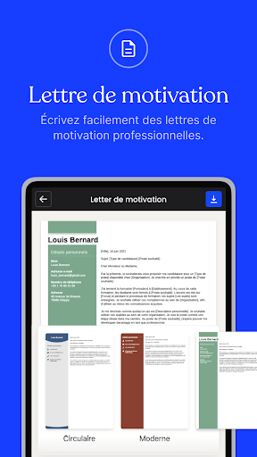 与 CV.fr 的简历设计器一起在几秒钟内创建专业的简历。只需输入您的详细信息,选择在线简历模板,然后在几分钟内上传您的简历。您可以使用我们的求职信生成器创建简历并将其与求职信关联,然后使用 CV.fr 简历应用程序及其工作机会开始申请。您已找到工作 使用申请人跟踪器来管理您当前的申请。<br> <br>CV.fr 可以帮助您:<br>- 使用我们的人工智能简历制作工具创建专业简历<br>- 使用我们的求职信生成器撰写有效的求职信<br>- 探索多个行业的数千个就业机会<br>- 使用易于使用的申请人跟踪工具管理您的申请<br> <br>借助 CV.fr 简历应用程序,找工作从未如此简单。人工智能简历制作工具可以帮助您令人信服地书写您的专业经验和技能,但它也了解如何最好地展示自己,从而创建一份智能简历。在我们的简历应用程序上使用 CV.fr 专业简历模板之一中的简历模板来吸引下一位雇主的注意,并有可能获得免费简历。我们的简历模板是可定制的,我们的简历设计师可以让您体现您的技能、经验和个性。<br><br>您的简历需要附有求职信吗?我们的人工智能信件生成器可以轻松创建个性化、专业的信件。它可以帮助您撰写一封在内容和美学上都能反映您身份的求职信。无论是初学者还是经验丰富的人,您都将获得一封免费的求职信,突出您的优势并给招聘人员留下深刻的印象。简历制作者的完美盟友! <br><br>准备好申请了吗?使用免费的简历应用程序和 CV.fr 简历应用程序中的工作机会来查找您所在地区及其他地区的工作。设置提醒,以便第一个知道您梦想的工作何时出现。您是否正在申请多个offer?这对于 CV.fr 来说不是问题。使用直观的申请人跟踪来保持井井有条并跟踪提交的每份申请。监控截止日期、跟进并高效管理您的求职,一切尽在一个地方。借助 CV.fr 简历应用程序,简历设计师可以以最简单、最有条理的方式为您找到下一份工作,创建智能简历。<br> <br>CV CV.fr CV 应用程序的简历设计器和求职信生成器提供免费的在线求职信和简历模板以及高级模板。我们将帮助您确保您拥有一份出色的简历,让招聘经理想要使用我们的简历制作工具与您联系。 CV.fr 免费简历应用程序团队致力于让我们的简历制作工具不断更新,以帮助您了解最新的招聘趋势,并且他们致力于始终以最佳方式呈现您的个人资料。从现代简历模板、由我们的简历设计师提供支持的免费简历格式到人工智能建议,我们的简历应用程序可确保您的申请脱颖而出并体现您的优势。 <br> <br>您的订阅将在每个周期结束时自动续订,除非在该周期结束前至少 24 小时关闭自动续订。订阅续订的费用与原始订阅相同,并将通过购买确认时与您的 Google Play 商店帐户关联的付款方式收取。<br><br>使用条款 (https://www.CV.fr/terms) 和隐私政策 (https://www.CV.fr/privacy)。