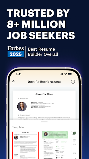 RESUME.COM:专业简历制作工具 随时随地轻松打造专业、求职必备的简历。<br><br>Resume.com 自豪地推出我们世界一流的移动简历制作工具!每年有超过 200 万求职者信赖我们的应用程序,它提供了一种流畅且完全免费的方式,帮助您创建一份高质量的简历,在各行各业的雇主面前脱颖而出。<br><br>专业效果,化繁为简 告别格式设置和复杂软件的困扰。我们的移动应用程序设计简洁高效,帮助经验丰富的专业人士和应届毕业生在几分钟内打造一份精美的简历。从 125 多个经专家审核的简历样本和模板中进行选择,这些样本和模板均旨在通过申请人追踪系统 (ATS) 的筛选,并最终送达招聘人员的办公桌。<br><br>通用兼容性 您的职业生涯不应局限于单一平台,您的简历也应如此。只需轻轻一点,即可将简历下载为专业 PDF 文件或通过电子邮件发送给自己。我们的简历针对所有主流求职网站进行了优化,包括 LinkedIn、Glassdoor、Google for Jobs、ZipRecruiter、Monster、CareerBuilder、Handshake 和 USAJobs。<br><br>移动端主要功能:<br><br>引导式创建:分步提示,助您轻松填写每个部分。<br><br>专家模板:访问各种可自定义且经人力资源部门认可的布局。<br><br>100% 免费:无隐藏费用、无订阅、无广告。<br><br>即时导出:高质量 PDF 下载,适用于任何求职申请。<br><br>特定职位示例:从海量行业简历示例库中汲取灵感。<br><br>简历小贴士:想要脱颖而出?快来体验 Resume.com 桌面网页版的最新 AI 功能!使用我们的网页工具,即可即时生成职业概要和工作经历描述。<br><br>各行业模板:<br><br>工程与技术<br><br>医疗保健与护理<br><br>教育与教学<br><br>金融与会计<br><br>行政与管理<br><br>远程办公及居家办公职位<br><br>隐私与条款 下载此应用即表示您同意 Resume.com 的 Cookie 政策、隐私政策和服务条款:https://www.resume.com/legal/<br><br>反馈意见?我们非常乐意倾听您的意见。请联系 support@resume.com。
