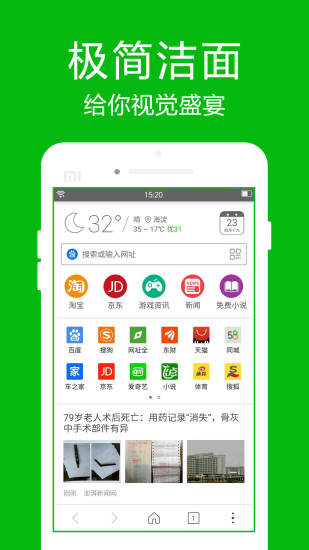 运行飞快,不占内存的浏览器仅1M! 她的优点: 【她很快】点击秒开,无闪屏! 【她很瘦】安装包仅1M,不占内存,运行飞快! 【她很省】可以拦截网站广告,流量不用担心! 【她很美】所有图标看起来赏心悦目! 【她很安全】不会对任何网站做服务器中转! 【她功能很全】听音乐,看电影,断点续传,夜间模式,无图模式,截图分享,各种功能都有! 悦动浏览器是一款针对安卓用户精心研发的无广告安全极速上网浏览器。自动屏蔽所有广告(再也不用担心90秒的优X广告了) ,告别烦人的弹窗广告、网页广告,内核极简,极速启动,占用手机资源极少超省电 ,节省广告请求流量,真正的绿色省流量,安卓装机必备。 我们还为您精选了适合安卓手机浏览的中文网站,让您随时随地关注包括新闻、小说、视频、购物、微博、娱乐、财经、社区、交友、团购、汽车等各类内容。