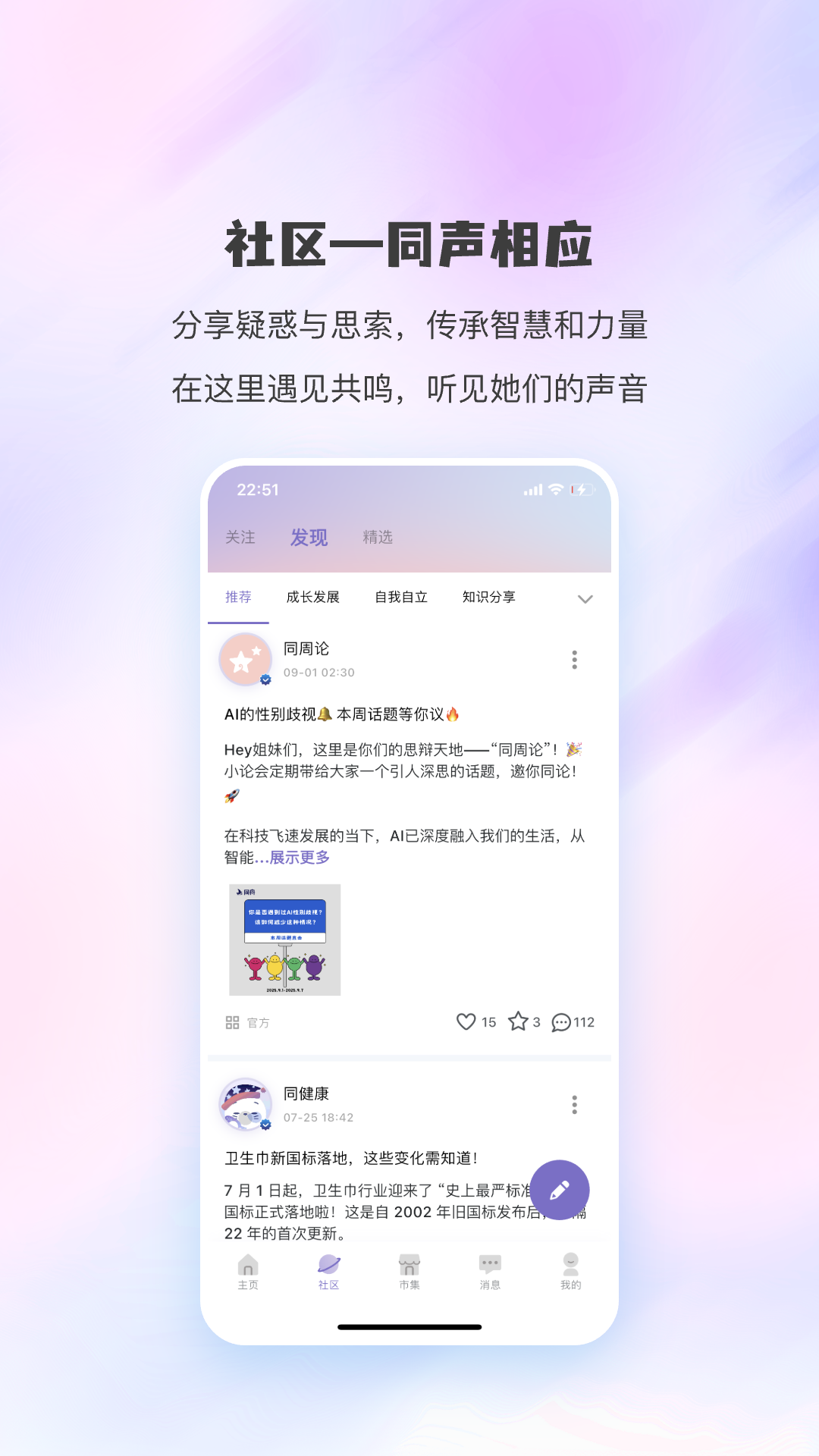 这里是专属于女性的灵魂栖息地,一个纯净、温暖、高能量的女性互助成长空间。在这里,你可以卸下社会角色的面具,遇见志趣相投的好友和姐妹;通过同声社区、互助群组和成长课程,与万千女性共同探讨职场进阶、情绪疗愈与自我提升。我们相信,女性的每一次发声都值得被聆听,每一份脆弱都能化为成长的铠甲。加入我们,在这个同频的世界里,温暖相拥,向阳生长。