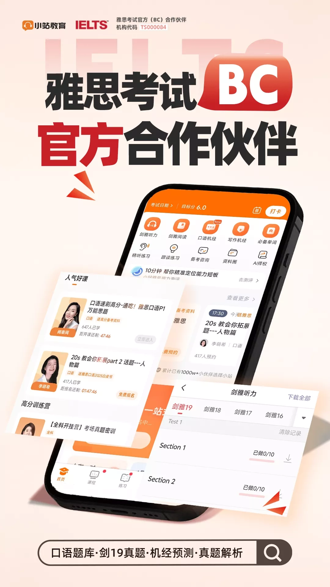 小站雅思,提供剑桥雅思完整听力阅读练习,口语真题题库,真人口语一对一模考,雅思听力口语阅读写作提分利器。新增雅思名师微课堂干货分享和丰富的战团活动,是小站留学系列APP之一,提供雅思口语批改,被网友称为良心“烤鸭“APP。我们致力于为大家提供权威的学习服务和的软件体验。 功能介绍 【剑桥雅思题库】 剑桥雅思题库,良好的手机做题体验加丰富的解析,刷题不费劲~ 【剑桥雅思精听】 听力精听精练,变速,单句播放,雅思听写好伴侣。 【口语全真模拟1对1练习】 模拟雅思口语考试流程,选取雅思高频口语真题,与考官1对1对话,训练考试语境,备考也动真格儿的! 【雅思口语批改】 口语练习模考没有批改怎么行,小站雅思特聘前雅思考官,为您提供口语批改服务。 【口语写作真题题库,口语写作机经】 高命中机经收录,精选雅思口语写作真题,定义考频,分类练习,定期更新。 【阅读听力口语写作全科分类】 分类练习,有目的有针对性的刷题。
