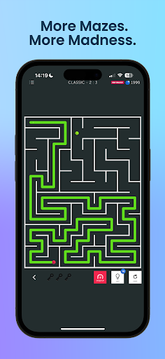 想找一款没有时间限制的挑战性益智游戏吗?欢迎来到迷宫狂热!<br><br>我们提供海量精心设计的迷宫关卡,难度从简单到复杂,层层递进,应有尽有。无需 WiFi,离线畅玩,乐趣无穷。<br><br>🎮 玩法介绍 迷宫狂热上手简单!<br><br>移动:滑动屏幕或使用摇杆引导小点到达出口。<br><br>能量补充:小点在新的空格中消耗能量球,保持能量充沛。<br><br>生存之道:不要走回头路!越过空位会消耗能量。<br><br>胜利:收集宝石即可通关!<br><br>🏆 奖励与升级 使用宝石打造终极迷宫解谜器:<br><br>加速:更快地穿过迷宫。<br><br>宝石倍增:提升经济效益——所有宝石奖励翻倍!<br><br>自定义皮肤:收集画笔,改变你的外观!<br><br>最大耐力:提升你的耐力上限。<br><br>能量恢复:加快你的恢复速度。<br><br>💡 专业提示<br><br>使用撤销:如果你卡住了或者走错了路,可以使用撤销功能。<br><br>支线任务:睁大眼睛,尽可能多地收集战利品。<br><br>准备好挑战你的大脑了吗?立即下载迷宫狂热!