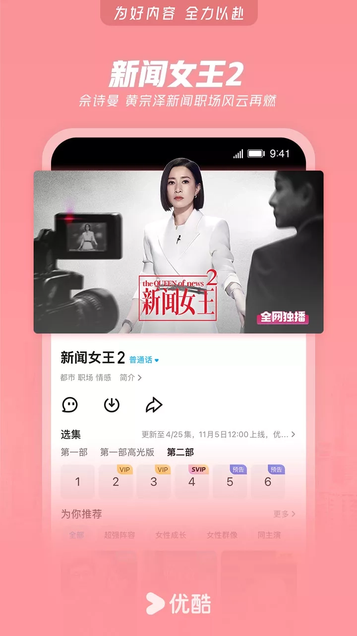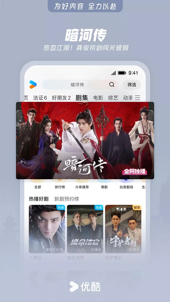 【精品内容,尽在优酷】 《暗河传》热血江湖!龚俊执剑闯关破局 《新闻女王2》重磅回归!佘诗曼黄宗泽新闻职场风云再燃 《入青云》侯明昊×卢昱晓演绎宿敌变夫妻 《东极岛》朱一龙吴磊国际大营救 《快乐趣吹风》高能抽风团爆笑出发 《偏爱之恋》高颜值男女海岛追爱 《天相》废相少年度化灵煞逆转天命 《灼灼韶华》热依扎、杨祐宁携手逆袭闯商海 《守护者们》龙套演员误入谍战迷局,结识爱国志士,以命布局联手抗敌 《绝命法官》正义法官张家辉为护子堕入犯罪深渊 《师兄啊师兄》神仙年番看师兄!苟道成圣,稳到飞起 《巨塔之后》宣萱打响豪门继承之战 《炙热游戏:百厨大战》与潘玮柏岳云鹏一起见证“年度厨王”诞生 《献鱼》陈飞宇X王影璐 魂穿少女攻略魔头师祖 《凡人修仙传》爆款IP!杨洋热血修仙逆天改命 《我在顶峰等你》少女重返青春逆袭改写人生 《哪吒之魔童闹海》哪吒涅槃重生高燃之战 《神墓 年番》脱胎换骨!辰南以己魔血染青天 《樱桃琥珀》纯爱无敌!赵今麦张凌赫青春甜恋 《以法之名》年度狠剧!张译扫黑除恶掀司法黑幕 《云深不知梦》大女主复仇爽番来袭! 《藏海传》全员狠人!灭门案引连环杀局 国内外大剧热综、扎堆院线影片、二次元热血动漫……看视频,用优酷APP 【简介】 兼容Phone和Pad设备。优酷中国知名视频网站,优酷App为7亿用户提供电视剧,电影,动漫,音乐,新闻,娱乐,游戏,原创搞笑等海量影视,高清流畅播放,极速离线缓存,支持微博、微信、朋友圈一键分享。强大搜索功能,优酷在手,应有尽有! 【温馨提示】 期许与鞭策,只为更好的起航!当您使用中如有任何疑问或想吐吐槽,都热忱欢迎您致电我们:400-810-0580(或通过“APP-设置-问题反馈”专属通道留言),优酷君一如既往在等你! 同时,优酷君也期待您脑洞大开的创意与想法,为我们建言献策,凡经采纳即赠优酷定制精美礼品一份哦!