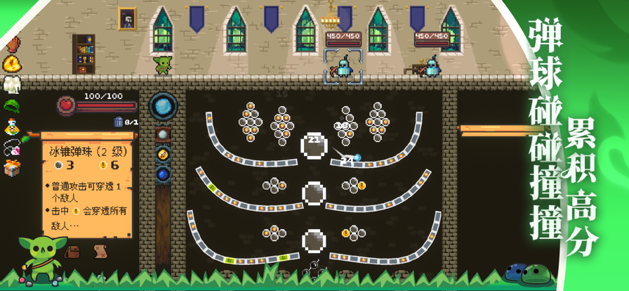 《哥布林弹球》是一款弹珠台式的Roguelike游戏 - 使用收集的各式弹珠,碰撞钉子来对敌人造成伤害。获得独特的遗物则会大幅度改变游戏机制,每次游玩都有新体验。请小心地调整射击方向,尽力在这款独特的回合制RPG中生存下去吧! 哥布林又被巨龙袭击了,还被抢走了所有的财宝。受够了!是时候出发了结它们的罪行了!穿越密林,攻克要塞,直捣龙穴,拿回属于你的财宝。好好地教训它们一顿。 哥布林弹球将幻幻球和杀戮尖塔的玩法机制相结合。敌人很难对付,如果你被击败了这局游戏就结束了。但游戏过程中,你会获得各式强力的弹珠和神奇的遗物。每种弹珠都有不同的能力。而遗物则会对你或敌人造成不同的效果,有些甚至会影响游戏的物理特性。利用好它们来打败敌人吧。 玩法介绍: 收集、强化带有各种能力的弹珠和遗物。打倒冒险之路上的怪物和首领。 使用弹珠台的方式进行攻击,击中越多的钉子,造成的伤害就越高。更要视情况灵活使用暴击钉,刷新钉和炸弹。 每一局的体验都不同,一路上会发现各式弹珠,遭遇不同的敌人,以及不一样的惊喜。