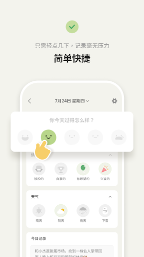 加入「情绪指压」,不仅随时随地记录心情,还可保存你的秘密、重要照片和任何生活纪录。分析记录下来的日常情绪日记,是一个很好的回顾和复盘的方式。<br><br>🌟 想知道你的情绪倾向是什么吗?想控制你的愤怒和悲伤吗? 🌟<br><br>☁️ 备份 & 恢复<br>支持在您的私人 Google Drive 帐户中备份/恢复日记。<br><br>🔏 密码保护 & 守护秘密<br>为你的个人日记设置密码。如果忘记日记密码,也可以在几秒钟内通过你的指纹解锁。<br>此外,你的数据始终完全由自己控制,「情绪指压」不会存储或收集您的数据。<br><br>📊 情绪统计 & 快速回顾<br>专注于你的情绪,帮助你进行自我反思和愤怒管理,从中找到让你觉得高兴或不安的事情。<br>每个月查看情绪的比例和对应的活动,直观的设计可以快速分析和回顾自己,诸如“我每周一心情低落”和“我在运动之后觉得很开心”等新发现。<br><br>📝 日记条理清楚<br>定义你的私人日记:将心情、照片、活动标签和实时时间添加到你的日记条中,选择喜欢的主题和心情表情包来装点你的日记,还有夜间主题方便晚上写作。<br><br>🏷 定制活动 & 快速搜索<br>自定义活动来记录你的各种日常生活,并按照自己的节奏搜索添加,例如情绪日记、宠物日记、健康日记、饮食日记、健身日记、旅行日记或情绪日记。<br><br>📅 心情日历 & 认识自我<br>通过你的情绪晴雨表,认识自己的情绪,觉察出内心感受,才能知其利弊,明其利害。<br><br>❤️ 心情疗愈 & 通则不痛<br>疗愈是一个清理堵塞能量的过程。通过情绪疗愈工具帮助,内观内省,及时发现自我,缓解压力,腾出空间储存你的快乐。<br><br>⏰ 每日提醒 & 继续努力<br>如果你设置了希望收到通知的时间,日记通知将在所需时间发送。及时通知你写下你的感受日记,不错过每一天。<br><br>📂 无需注册 & 易于使用<br>「情绪指压」很简单就可以创建、更改或删除日记。无需注册,每天创建一篇日记,选择一个可爱的表情符号,添加喜欢的照片,写点什么,享受轻松写日记的乐趣。<br><br>⌚️ Wear OS app 功能:<br>- 跟踪步数和睡眠时长,并将结果与前一天进行比较。<br>- 使用智能手表上的 Moodpress Wear OS 应用程序,根据您的 HR(心率)和 HRV(心率变异性)数据了解您当前的压力水平。 此外,在您的允许下,您可以及时收到通知以关注您的压力水平。<br><br>✒️在「情绪指压」 尽情记录你的每个✨难忘瞬间吧!<br><br>我们很想听听你的 「情绪指压」 体验🙌<br>Instagram: @moodpressapp<br>https://www.instagram.com/moodpressapp/<br><br>使用条款:https://www.yoobool.com/moodpress/terms<br>隐私政策:https://www.yoobool.com/moodpress/privacy