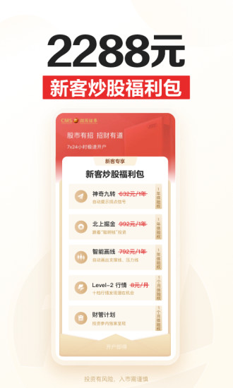 【国泰海通通财】7*24小时开户,权益多多,持续为投资者提供专业的金融服务。 炒股,理财,基金,一站式综合财富管理服务! 更短的时间,更快的决策,就在国泰海通通财! --------------智能矩阵-------------- 【智能盯盘】 股价预警、大事提醒,更有7大策略盯盘; 捕捉下单好时机,只为更轻松地投资 【智能账户】 盈亏一目了然,每日交易复盘; 6大维度洞察投资能力,工具课程匹配提升; 【智能客服】 7*24小时温馨守候,全天候响应专业服务体验; 【智能选股】 基本面、技术面、舆情、大数据选股,多维考察更专业; 【智能资讯】 个性化推荐热点资讯,您关心的才有价值; 【一键打新】 轻松一键自动打新,中签提醒不错过; -------------主打服务--------------- 【多市场品类交易】 支持A股、期权、OTC、场外基金等交易 【全品种秒动行情】 沪深港及全球行情秒速更新,畅享Level2十档行情; 股票、债券、基金、期货、外汇市场动态一网打尽 【精品理财产品商城】 严选公募、理财产品等,多样选择助力财富管理 【市场资讯全球热点】 24小时全球资讯滚动,第一时间把握市场脉搏; 海通研究所独家深度解读,为您的投资保驾护航 【随时刷脸开户】 7×24小时,单向视频验证不排队,一步到位绑定银行卡 【全业务办理掌厅】 支持48项4大类业务涵盖所有需求,快速办理无需等待 【联系方式】 在APP使用过程中,您有任何建议或遇到任何问题,都可以联系我们: 1、打开国泰海通通财,点击“客服” 2、拨打服务热线“95521” 温馨提示:理财有风险,投资需谨慎。请根据个人风险承受能力,理性投资。 新客好礼: 新客户通过国泰海通通财APP开立证券账户,可获得行情月卡12个月、盘中宝3个月、形态大师3个月、新手投资训练营、新客理财券一张。开户成功后,卡券将发放到通财APP上,限有效期内使用,活动即日起长期有效,具体内容以APP内所示为准。