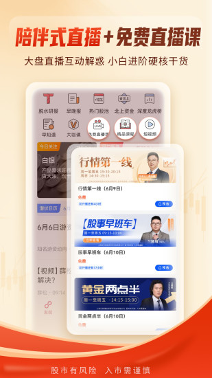 【118元新客礼】 《脱水研报》7天畅读卡,0门槛。 每天8-10篇干货短文,从机构视角挖掘具有成长逻辑和爆发潜力的个股。内容来自专业团队对市面上海量研报的实时跟踪与精准挖掘。化繁为简,逻辑清晰,新手友好,大大提升研究效率。 选股通是一款汇集了实时行情、重要指标、专业资讯,深度分析与投资机会的股票软件,短线交易、价值投资、炒股选股要看的关键内容这里都有。 【陪伴式直播+免费视频课】 大盘直播互动解惑,小白进阶硬核干货。 【7*24小时快讯】 每日不间断的股市资讯播报,全面及时重点突出,不错过影响决策的重要消息。 【风口板块】 领涨板块,热门股池,涨停池,强势股池,热门题材一手在握。 盘中实时更新大涨板块与个股,市场热度和最热个股一目了然。 大涨股解读:大数据全网监测相关资讯、公告等信息,深入分析股价变动原因。 【深度龙虎榜】 龙虎榜复盘,龙虎榜热门,游资,机构,外资资金动态,一眼读懂主力动向。 【早晚报复盘】 涵盖每日重大事件与热点主题复盘,投资机会前瞻,市场重点信息一目了然。 早报内容:海外新闻+隔夜重大事件汇总+大盘前瞻+机会前瞻+公告精选。 晚报内容:明日主题前瞻+宏观要闻