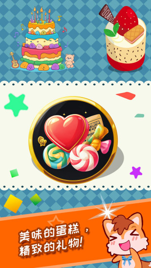 宝宝过生日手机APP:一次有趣的的生日派对!你就是生日派对的小主人。 生日蛋糕的制作:从蛋糕的口味、蛋糕的装饰、生日蜡烛的选择等; 生日派对的布置:从桌布、餐具、蛋糕零食、饮料的选择,客人的和自己的全由你来选择。 宝贝们,美味的奶油蛋糕,可爱的甜甜圈和好喝的饮料都在向你招手呢一起来举办生日party吧~Happy Birthday~ 功能特点: 独属于宝贝们的生日party,让宝贝们随时享受生日party的乐趣。 丰富的生日party的素材,让宝贝能体验与现实贴近的生日party。 精心选取的精美图片、精致的礼物卡片。 能锻炼宝贝的动手能力、还能锻炼宝贝的审美和自己独立思考的能力。