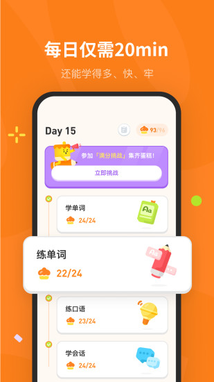 【蛋糕英语是什么】 百词斩旗下全新少儿英语系统提升产品,专为中国6-12岁小学生设计,内容对标剑少、新课标。每日20分钟,全面覆盖“单词-听说-阅读-语法/句式”四大板块,让孩子学得多、快、牢。 【蛋糕英语内容】 1、每日20分钟,短时高频,浸润式学习,养成良好学习习惯,提高吸收效率。 2、L1-L4四种等级,满足从0基础到高年级冲刺备考需求。4年目标掌握2800词,搞定小初高。 3、“学-练-测-复习”一体,科学规划,边学边练,短时高频,让孩子学得多、快、牢。 4、内涵1500+分级绘本资源、自然拼读专项训练等特色功能,帮助孩子打造语言环境,实现高效提升。