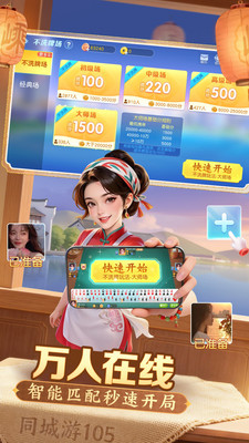 应用介绍:105是嵊州特色棋牌游戏。105一般的抓分到105才算一级故称之为“105”。出牌规则类似双扣,2对2。坐位相对的玩家相互配合,抓分多的一方获得胜利。105牌型自由,加之独特的得分和奖励规则,使得游戏牌型变化很多,即有趣又刺激,深受广大民众的欢迎和喜爱。 【游戏特色】 [真人对抗,超震撼对抗快感] 同城游105采用极具特色的地方棋牌玩法,真人对抗刺激体验。 [嘉兴经典玩法,正统规则] 嘉兴正统的棋牌游戏,本地经典规则,同城游打造本地有影响力的手机游戏。 [一键快速配桌,畅玩不停] 秒排配桌,无需等待,让你欢乐不停歇!