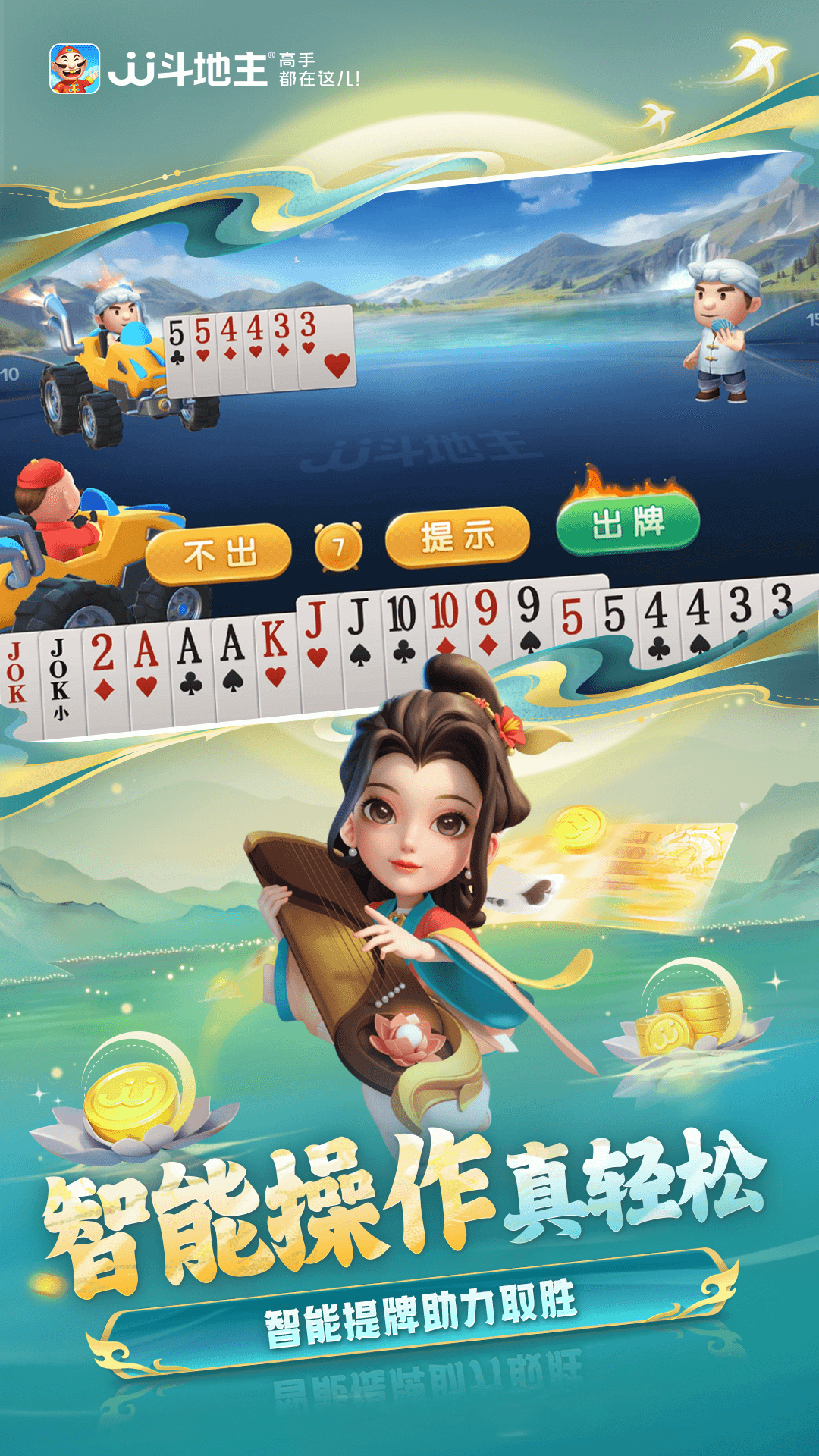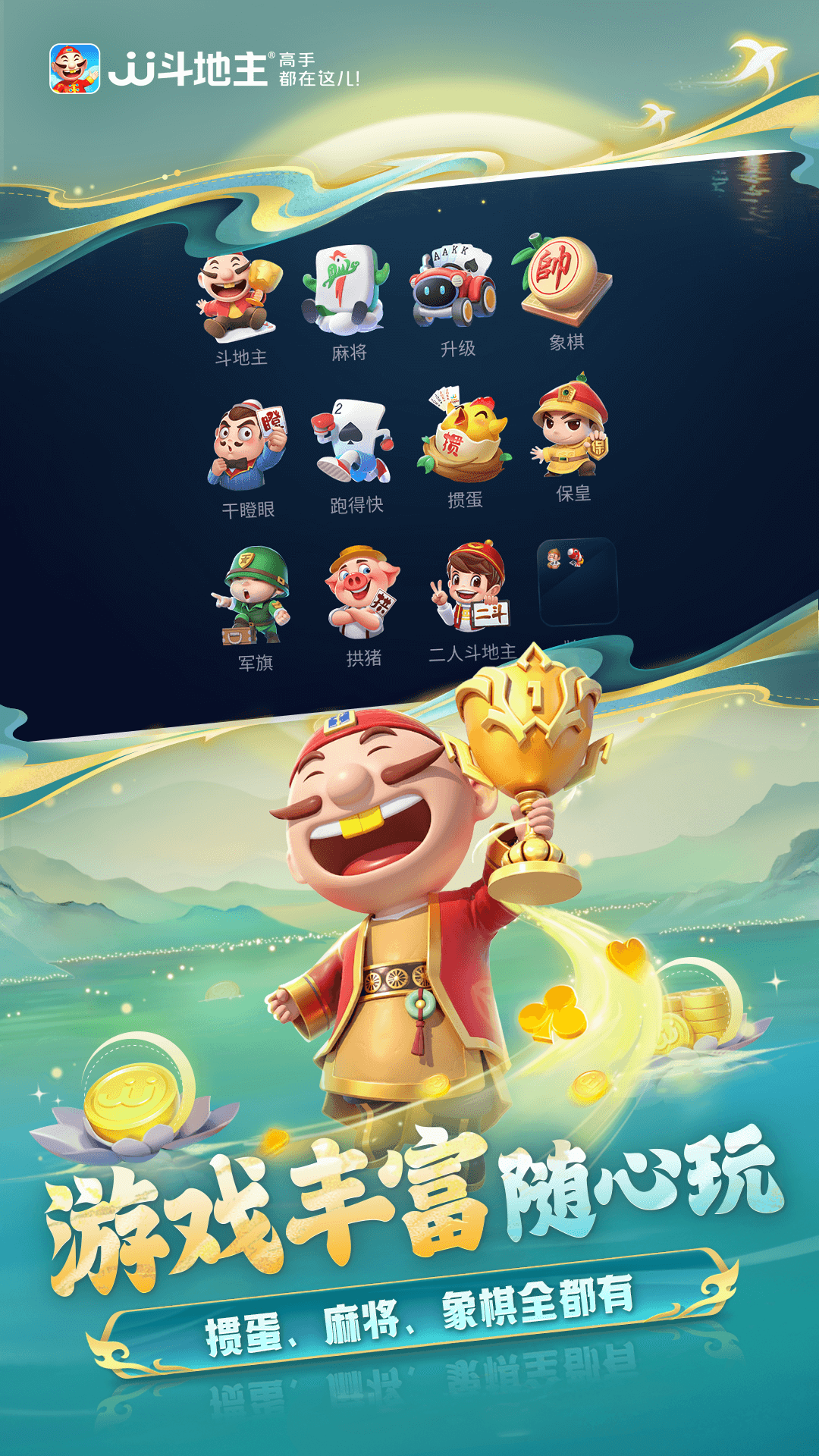 以智取胜,斗得过瘾!全国牌友邀你实时对战,赢限时豪礼!比拼牌技,速爽解压,放肆嗨玩!欢喜庄园,种啥都赚,轻松暴富!珍宝奇遇活动来袭,阿九邀你探宝领豆!解锁典藏牌桌,酷炫场景,震撼动态! 多种玩法,风靡全网,等你来斗! ——主播爆款,创新玩法任选!—— 【克隆炸炸炸】网红人气爆款!连胡带炸爽不停! 【连炸斗地主】满屏炸弹,轻松破亿,爽快解压! 【王牌510K】超高倍率,一把千亿,双地主加倍暴击! 【超级掼蛋】起手好牌,一键理顺,开局翻倍连炸! ——百玩不厌!纯正经典斗地主!—— 【不洗牌】规则简单0门槛,练牌技,练手感! 【2v2】好友组队,合作双赢!拼实力,拼默契! 【巅峰赛】真人竞技,牌局博弈,高手对决秀实力! ——高品质特效,沉浸式玩牌!—— 轻国风画风,高品质场景。动态牌桌,珍宝龙宫,尊享体验! 独特角色系统,养成玩牌技能。致敬神话经典,角色悟空、哪吒皮肤,叱咤牌局!更有阿杰、乔诗语、云鹤追等知名CV加盟,沉浸式玩牌!