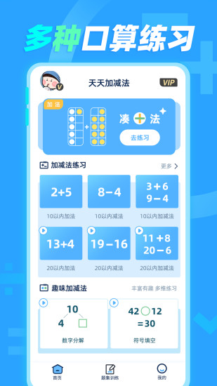 本应用是一款提供精细化分类口算计算题的APP,帮助用户选择性强化练习对应的计算题,提高口算计算的能力,锻炼数学逻辑思维。 【应用功能】 1.提供4种加减法口诀及其练习:凑十法、破十法、平十法、借十法。 2.提供加减法、乘除法和趣味玩法的练习。 -加减法分类里包含10以内、20以内、50以内、100以内、1000以内的多种加减法运算。 -乘除法分类里包含九九乘法表、两位数乘除法、乘除法混合运算等多种玩法。 -趣味玩法包括数字分解、符号填空两种玩法,以另一种角度解构口算计算题目。 【应用特色】 1.提供口算题的打印,针对加减法、乘除法分类的多种题型;另外还推出了针对部分知识点的特殊题型的题集打印。 2.在加减法、乘除法分类的题型中,针对用户做错的题目将罗列到错题集中,加强用户对错题的再次训练,提高对于易错题的理解能力。 3.针对加减法、乘除法的部分分类提供竖式计算的练习,强化用户竖式训练的熟练性。 4.对于加减法、乘除法的多种分类题型,针对用户练习产生的成绩进行记录,便于用户了解自身的进步。