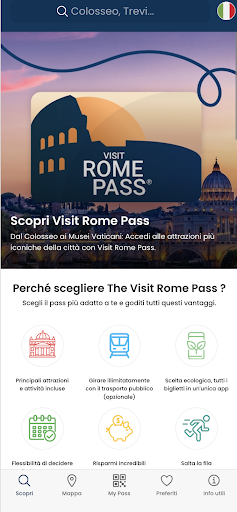 罗马旅游通票——意大利旅游局推出的永恒之城罗马旅游通票<br><br>罗马旅游通票是您的罗马旅游必备应用。有了罗马旅游通票,您可以畅游罗马最具标志性的景点,从斗兽场到梵蒂冈博物馆和西斯廷教堂,应有尽有。<br><br>罗马这座城市精彩纷呈、气势恢宏、独一无二。每个角落都诉说着一段故事,值得一看的景点如此之多,您可能不知从何下手!如果没有计划,罗马之旅可能会既困难又昂贵。有了罗马旅游通票,只需一部智能手机,即可轻松畅游罗马。购买通票后,您可以创建专属的个性化行程。根据您的需求,选择最适合您的方案:<br><br>选择您的通票:<br><br>- 罗马两日通票:包含景点门票及可选景点,并可选择加购两日公共交通<br><br>- 罗马三日通票:包含景点门票及可选景点,并可选择加购三日公共交通<br><br>- 定制您的罗马通票:选择至少两项您真正想体验的景点或服务<br><br>使用罗马通票,您可以按照自己的方式探索罗马,打造专属旅程。<br><br>使用罗马旅游通票,您可以享受以下权益:<br><br>- 畅游罗马众多热门景点,包括斗兽场、万神殿和圣彼得大教堂<br><br>- 添加可选景点和服务,打造个性化体验<br><br>- 享受指定景点的优先入场和导览服务<br><br>- 使用官方应用程序,获取地图、实用信息和定制行程<br><br>- 添加可选的公共交通通票,有效期为 2 天、3 天或最多 7 天<br><br>- 通过 WhatsApp 享受专属客服支持<br><br>罗马旅游通票——您自主探索罗马的最佳选择。