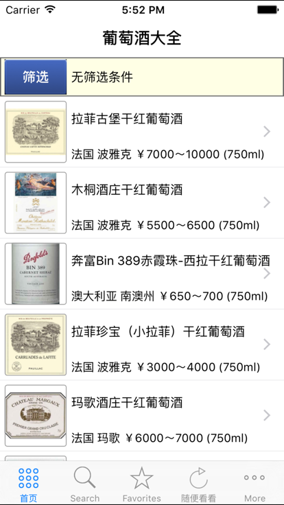 葡萄酒百科是葡萄酒相关的百科知识应用,为红酒爱好者提供全方位的葡萄酒相关内容,包括酒庄、产区、葡萄品种及葡萄酒知识。 一次下载,所有信息离线使用。所有IOS设备通用,支持一键收藏,摇一摇随机查看,全文搜索。 ◆丰富的离线数据包,一次下载,无后续流量费用 ◆资料详实,品种齐全 ◆一键收藏,随时查看,支持手势滑动切换 ◆全文搜索,键入酒庄、产区、酒名等即刻查询
