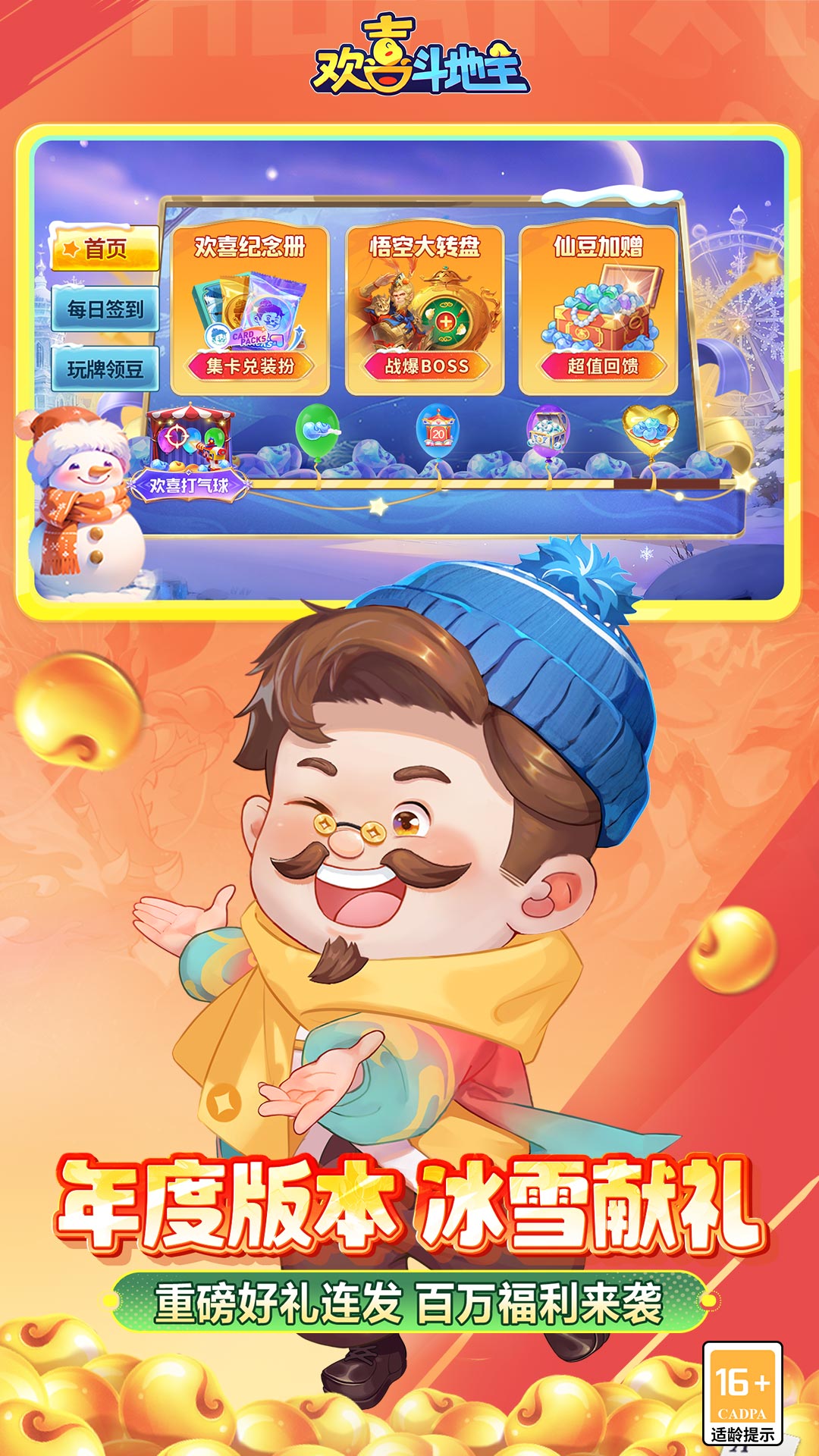 全国牌友邀你实时对战,赢豪礼!年度版本重磅来袭,开启全新冰雪主题!悟空转盘限时返场,大圣与你合力战爆BOSS!购物狂欢福利活动,限时仙豆加赠!保卫家园塔防激战再升级!高强武器助力燃爆全场!欢喜庄园,种啥都赚,轻松暴富!解锁典藏牌桌,酷炫场景,震撼动态! 多种玩法,风靡全网,等你来斗! ——主播爆款,创新玩法任选!—— 【克隆炸炸炸】网红人气爆款!连胡带炸爽不停! 【连炸斗地主】满屏炸弹,轻松破亿,爽快解压! 【王牌510K】超高倍率,一把千亿,双地主加倍暴击! 【超级掼蛋】起手好牌,一键理顺,开局翻倍连炸! ——限时活动,好玩不重样!—— 惊喜随机掉落,挂机修仙、热血战斗、休闲钓鱼不定时开启! 【悟空转盘】新增肉鸽元素,援兵系统升级!把把未知爽局,战爆BOSS更刺激! 【守护藤屋】BOSS来袭,爆裂对抗!瞄准弱点,一击破亿! 【钓鱼挑战】欢乐钓鱼,速成大师!丝滑操作,大货秒上钩! 【龙宫探宝】探寻珍宝,好运连连,盆满钵满,解锁炫酷装扮! 【欢喜娃娃机】轻松趣味抓娃娃,一击必中,领限定奖励! 【桃源小仙】挂机升级,带宠修仙,躺平暴赚亿万豆! ——百玩不厌!纯正经典斗地主!—— 【不洗牌】规则简单0门槛,练牌技,练手感! 【2v2】好友组队,合作双赢!拼实力,拼默契! 【巅峰赛】真人竞技,牌局博弈,高手对决秀实力! ——高品质特效,沉浸式玩牌!—— 轻国风画风,高品质场景。动态牌桌,珍宝龙宫,尊享体验! 独特角色系统,养成玩牌技能。致敬神话经典,角色悟空、哪吒皮肤,叱咤牌局!更有阿杰、乔诗语、云鹤追等知名CV加盟,沉浸式玩牌!