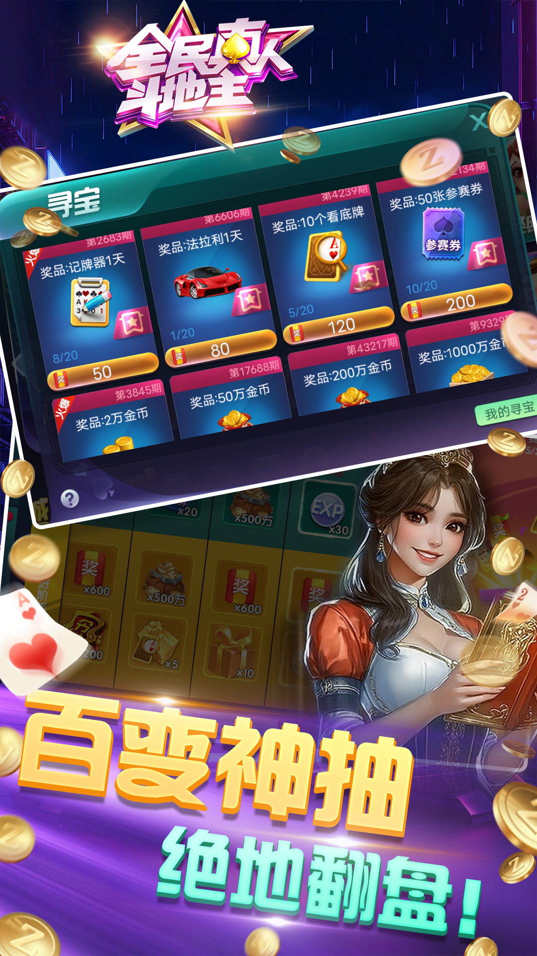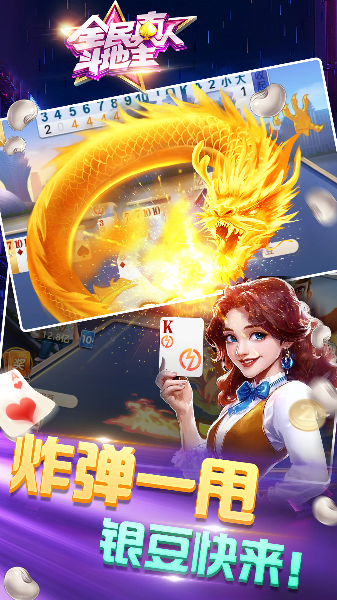 传统休闲的免费斗地主游戏。玩法升级,赛事更丰富!<br>无数真实玩家同台竞技,牌技+运气,快乐赢好礼!<br><br>游戏特色:<br>【八宝万花牌】四人桌,凑和牌,王牌癞子胡不停,宝牌加成翻倍赢,爽快刺激不能停!<br><br>【换牌大爆炸】地主VS农民,对决升级,限时换牌,趣味升级,疯狂连炸超过瘾!<br><br>【火爆赛事】全新竞技模式,火爆新高度。全天开赛,免费报名,赢千元实物大奖!<br><br>【天天豪礼】每天福利游戏豆,打牌实力赢豪礼。斗地主,挣家电,勤劳致富就靠你!<br><br>【超多玩法】经典:癞子、欢乐玩法;创新:八宝万花牌、换牌大爆炸、决战510k玩法,想怎么玩就怎么玩。<br><br>【精美画面】精致场景+经典人物,享受视觉盛宴,一起决战到天亮!<br><br>【角色合成】合成全新角色,解锁更多技能,坐享收益倍轻松。